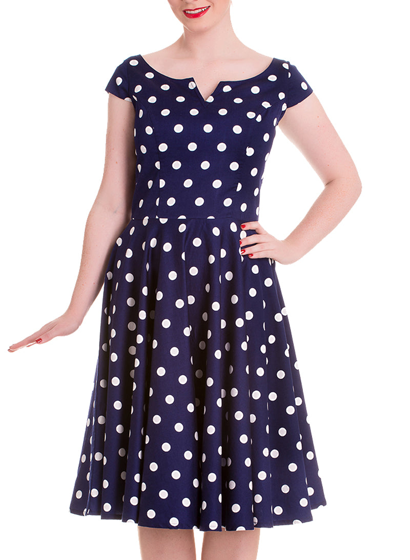 Hell Bunny ANTOINET 50s Retro POLKA DOTS Punkte Boat Neck Dress Kleid