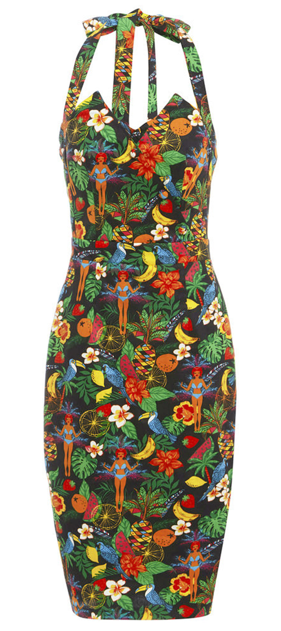 Lindy Bop »MILLIE TROPICAL« Tiki Jungle Vintage Pin Up Pencil Dress KLEID