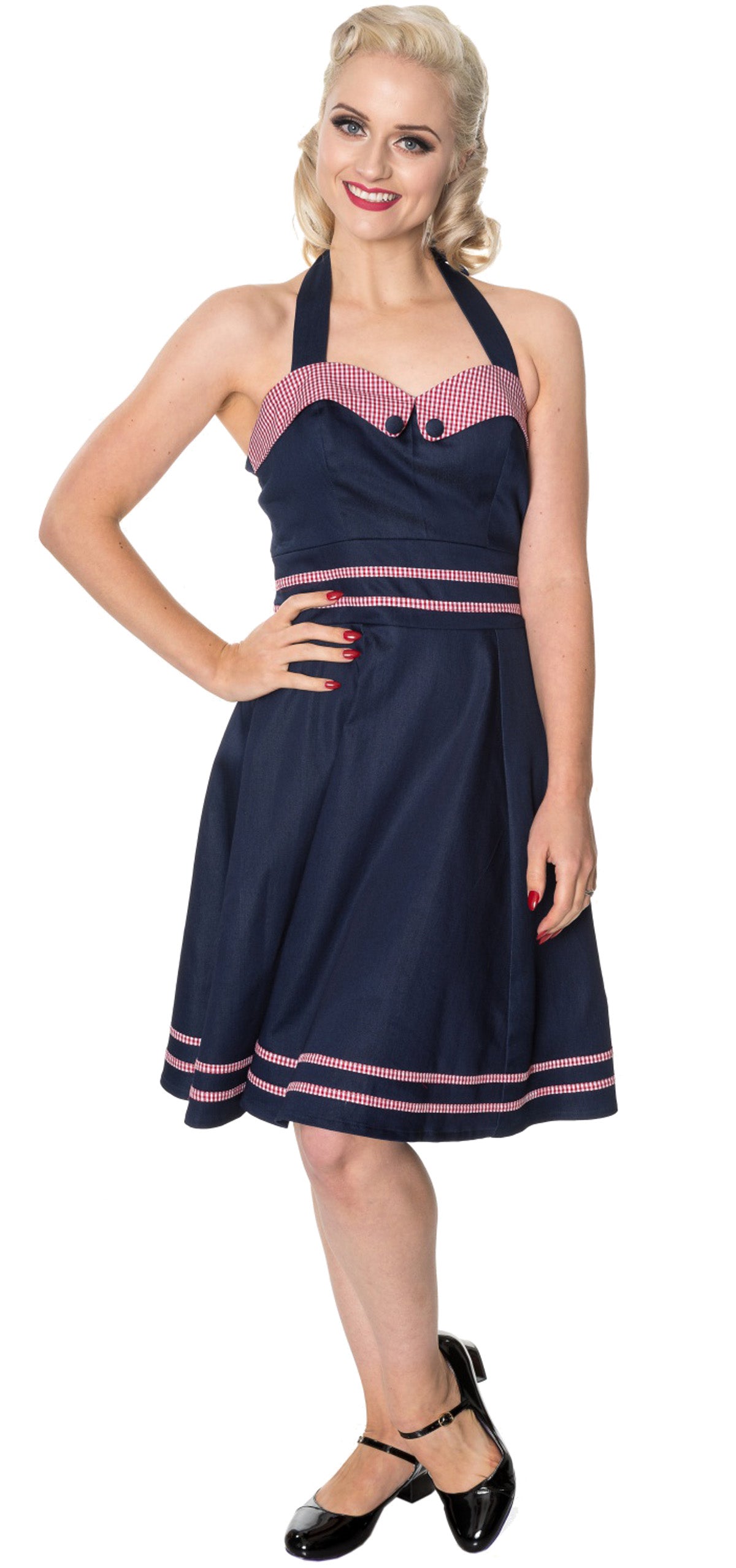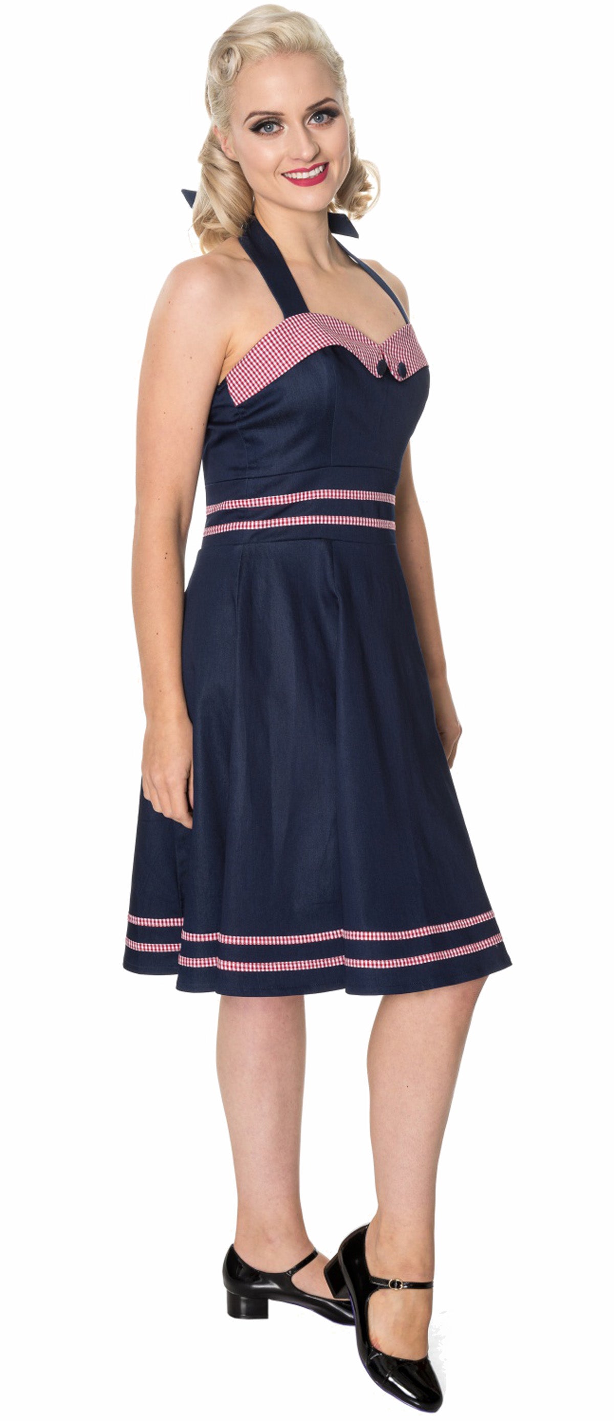 Dancing Days J`ADORE Gingham Denim Vintage Swing Neckholder Dress KLEID