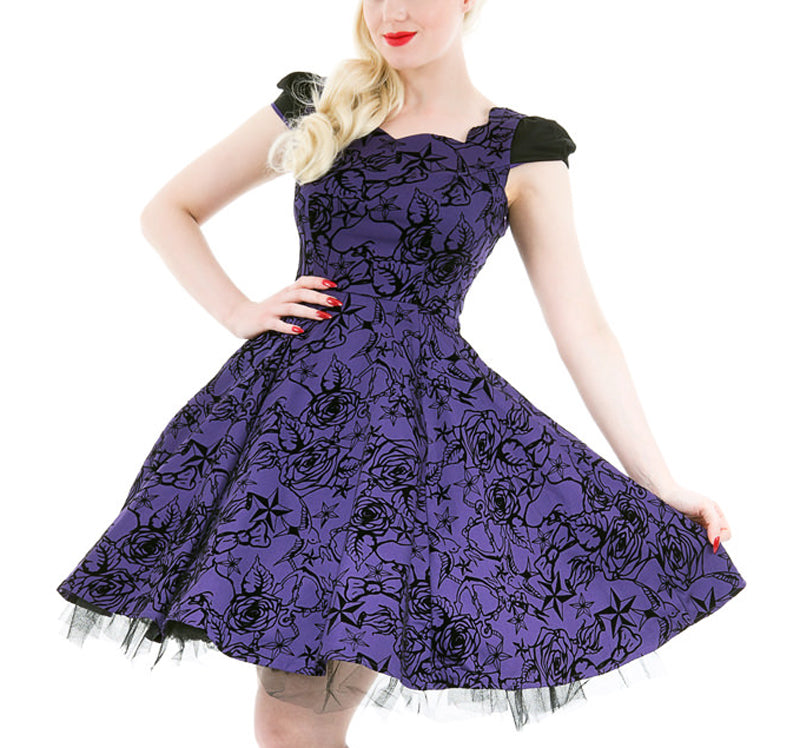 Hearts and Roses ANCHOR Oldschool Flock Roses Retro PETTICOAT Dress KLEID
