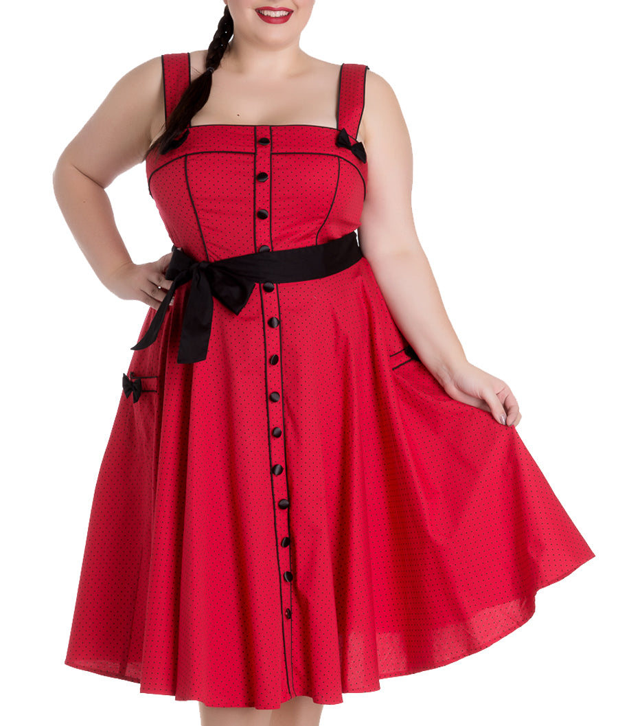 Hell Bunny MARTIE 50s Polka Dots PUNKTE Button KLEID Rot Plus Size