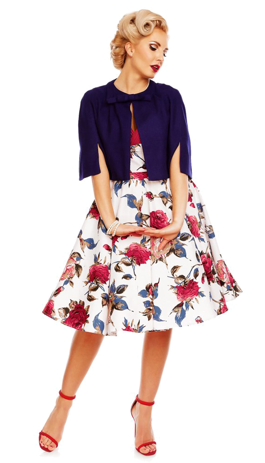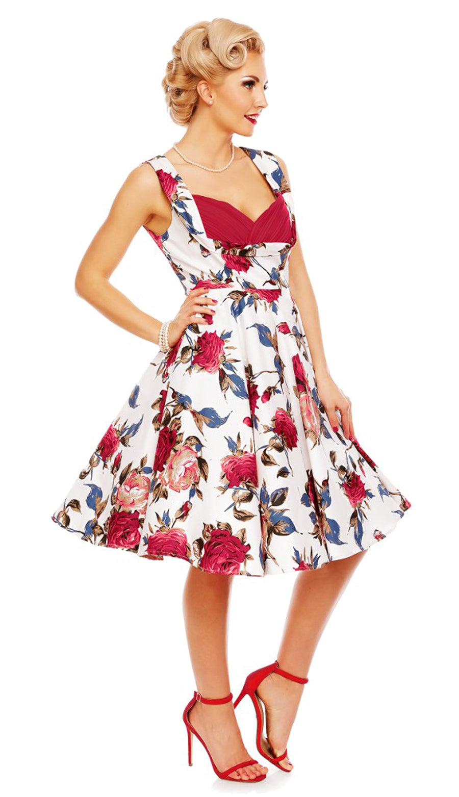 Dolly & Dotty GRACE Pleated Red ROSES Vintage Floral SWING Kleid