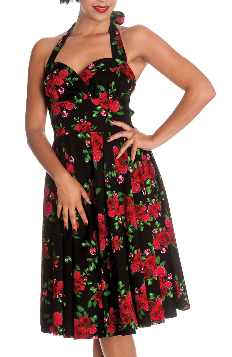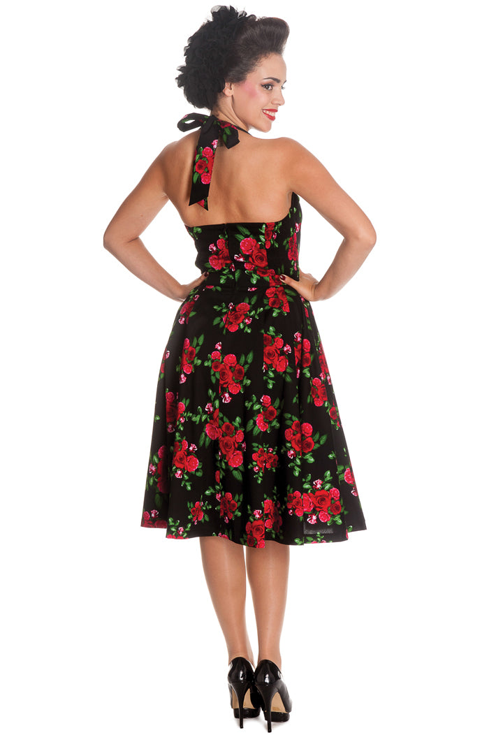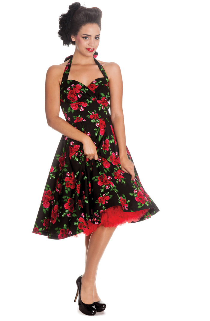 Hell Bunny «CANNES RED ROSES» Vintage 50s SWING Dress KLEID Schwarz
