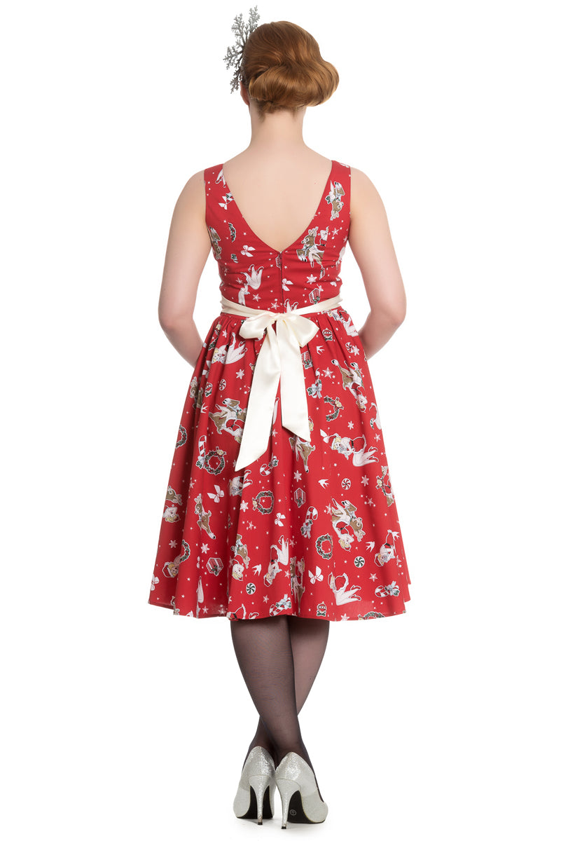 Hell Bunny BLITZEN 50s Vintage CHRISTMAS Pin Up V-Neck Träger SWING Dress / KLEID