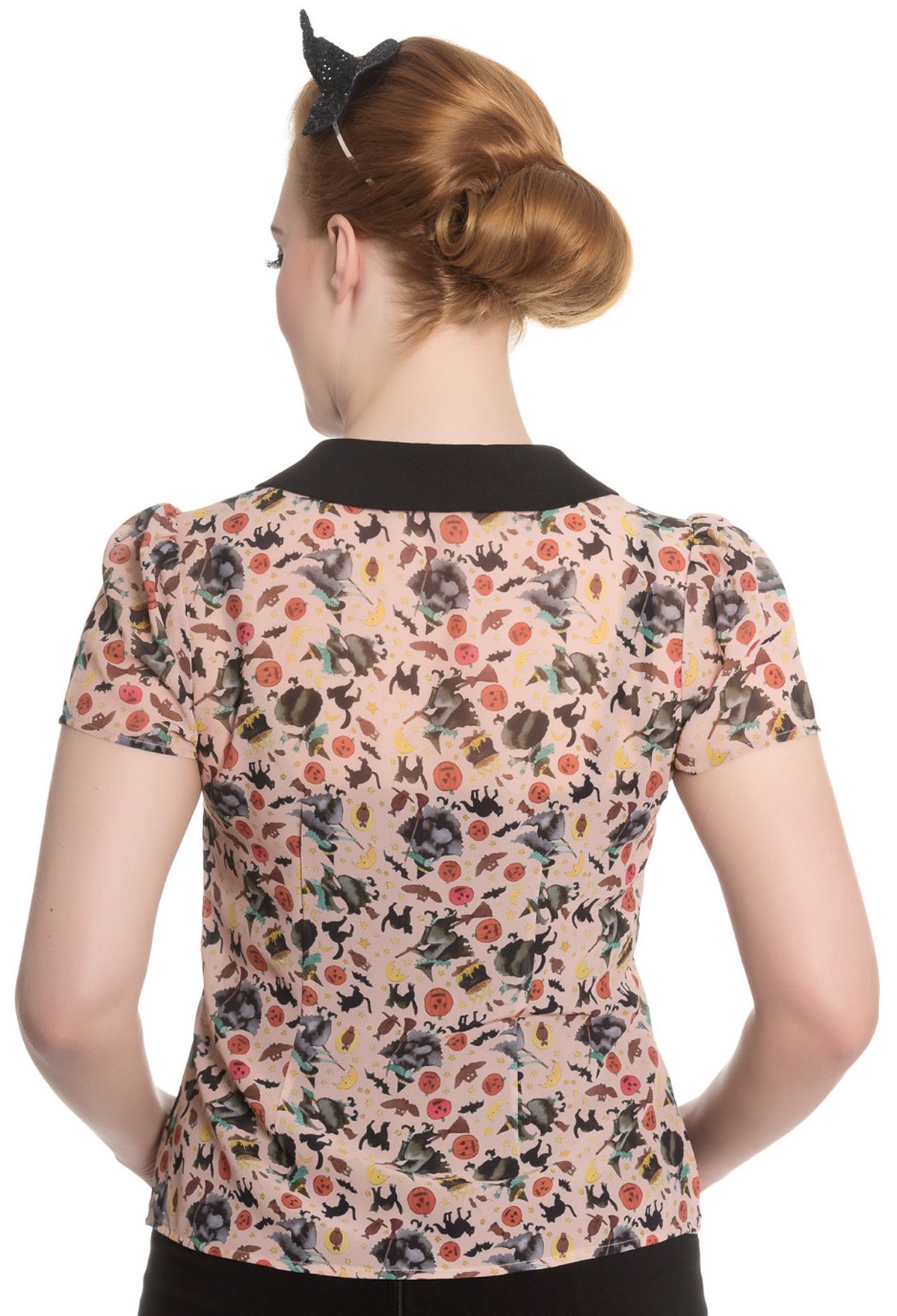 Hell Bunny WITCHY BLOUSE Retro Chiffon Pin Up HALLOWEEN Pumpkin BLUSE