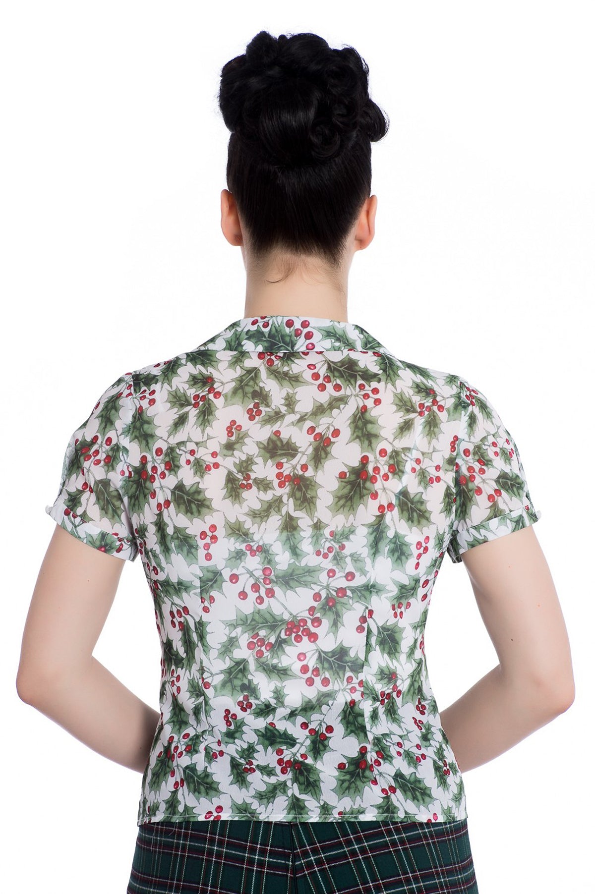 Hell Bunny HOLLY Berry Leaves Autumn Peter Pan Chiffon Pearl BLUSE