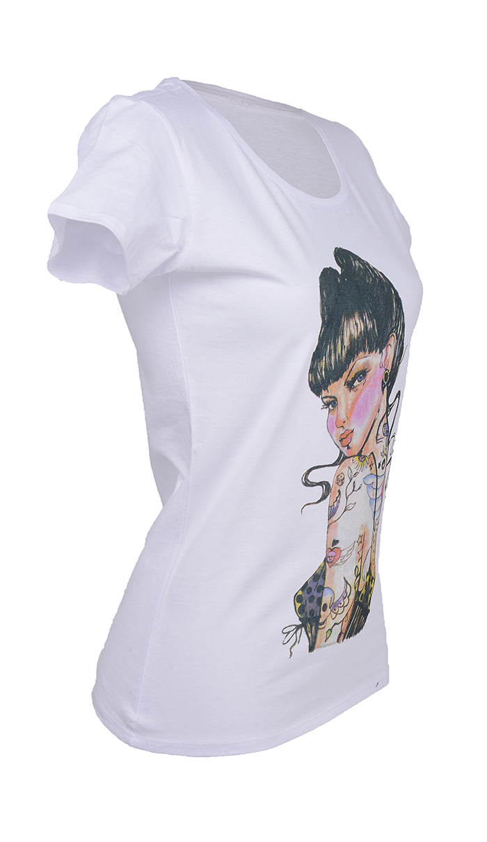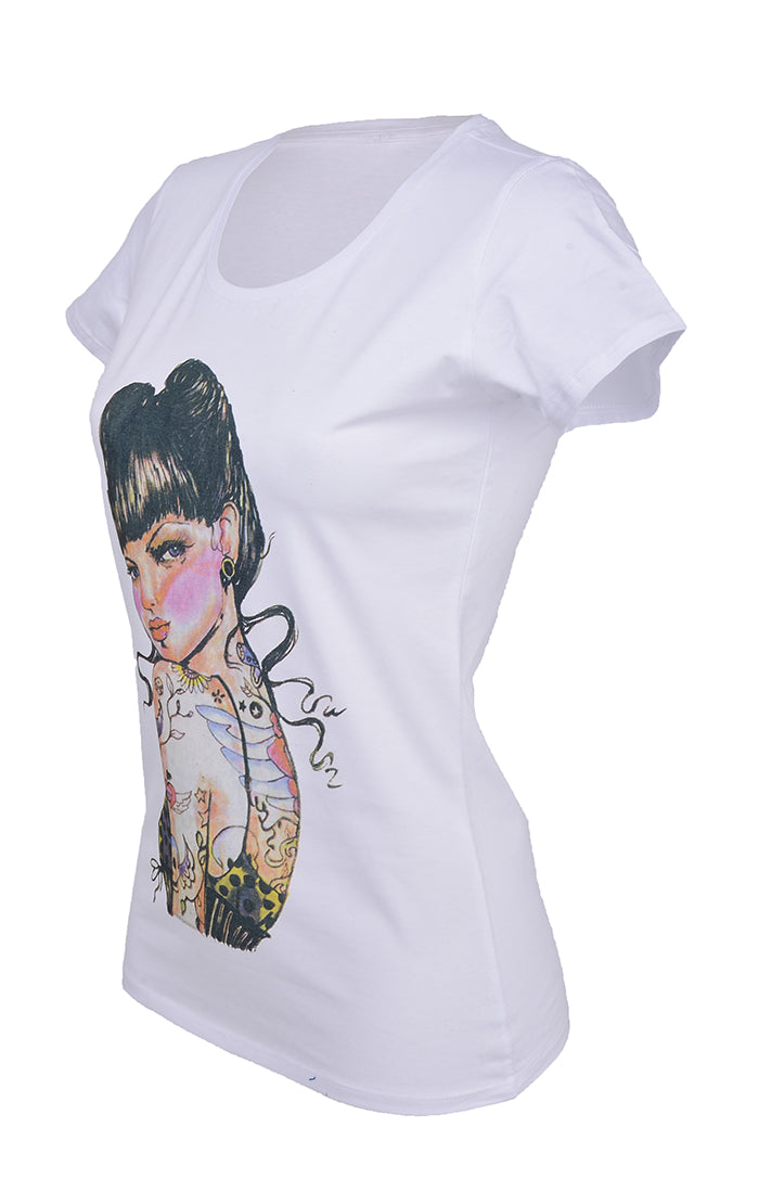 Killer Kirsche »PIN UP OLDSCHOOL TATTOO GIRL« Retro Kurzarm Shirt / T-Shirt - Weiß