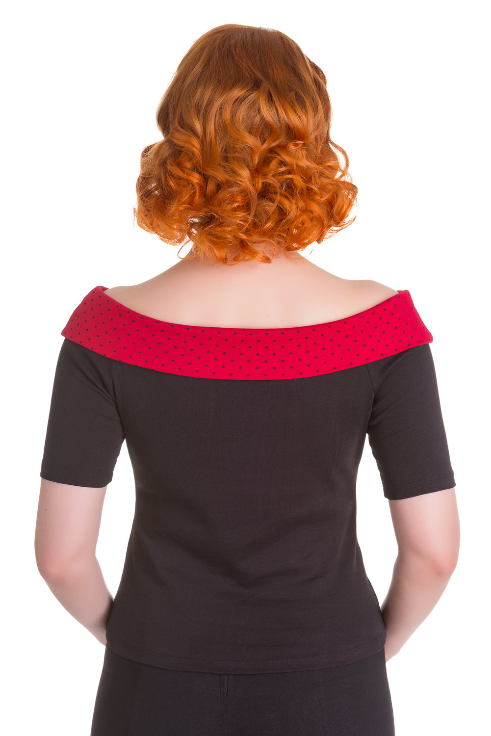 Hell Bunny CHLOE Polka Dots PUNKTE Red Collar Carmen Top / SHIRT