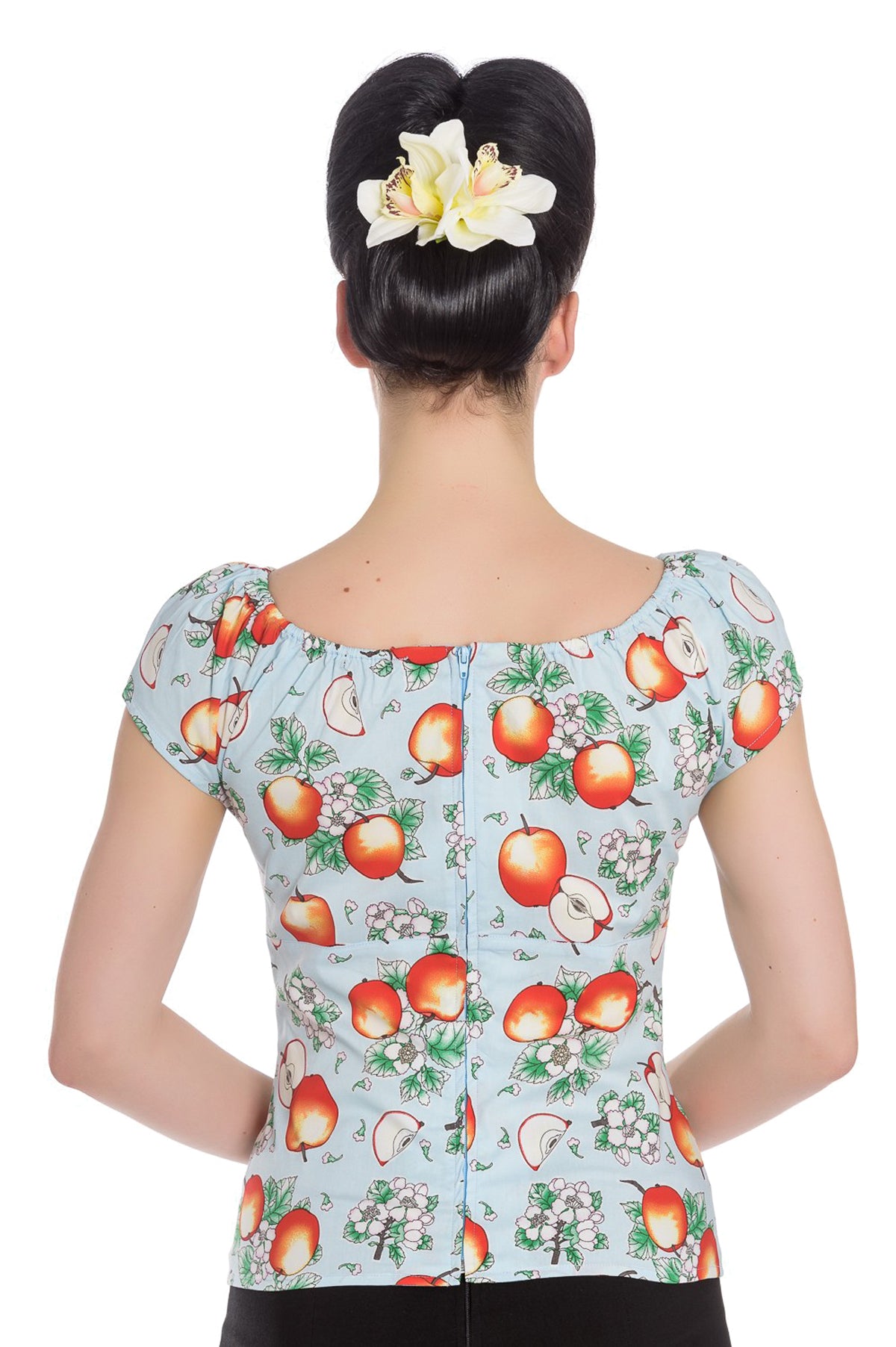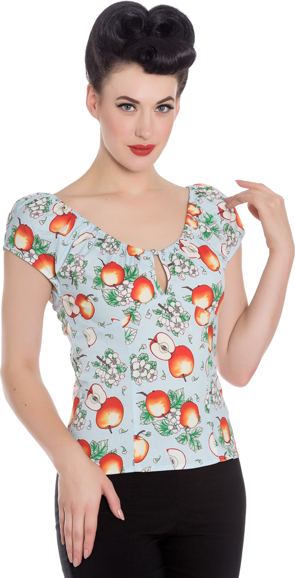 Hell Bunny SOMERSET Keyhole Vintage Apfelblüten 50s SHIRT Bluse - Blue
