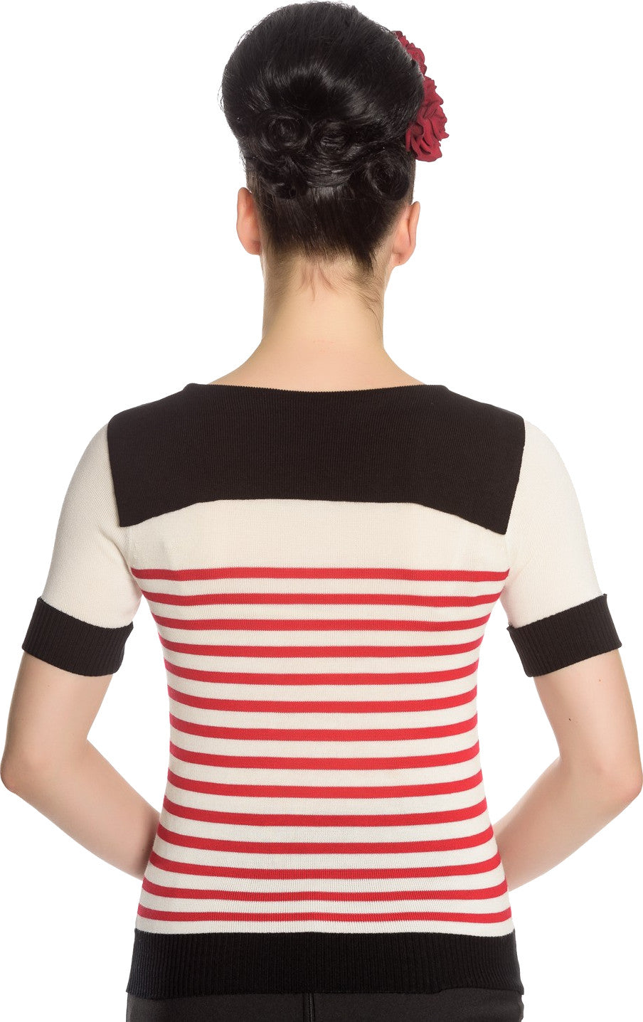 Hell Bunny COCO 50s STRIPED Strick SAILOR Matrosen Top / SHIRT - Rot