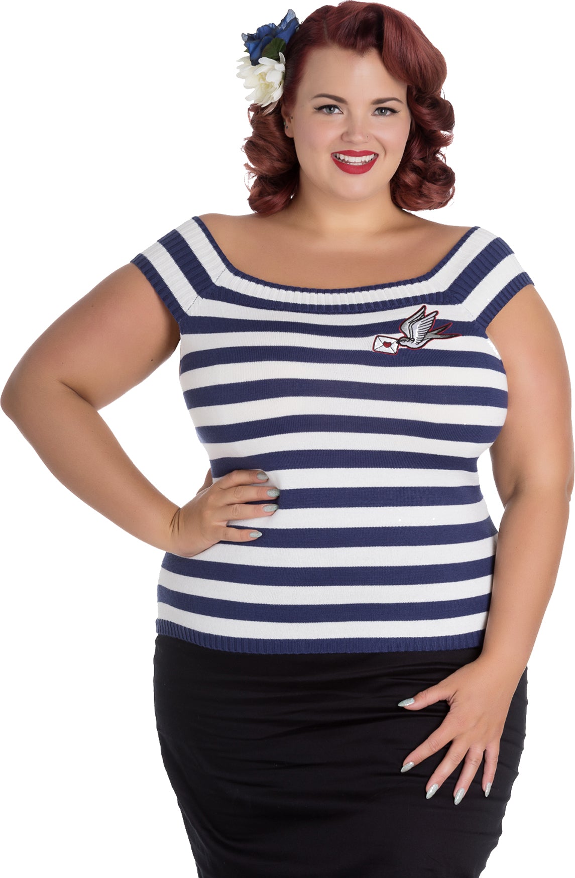 Hell Bunny HAILEY 50s STRIPED Sailor SWALLOW Knit Top SHIRT Plus Size