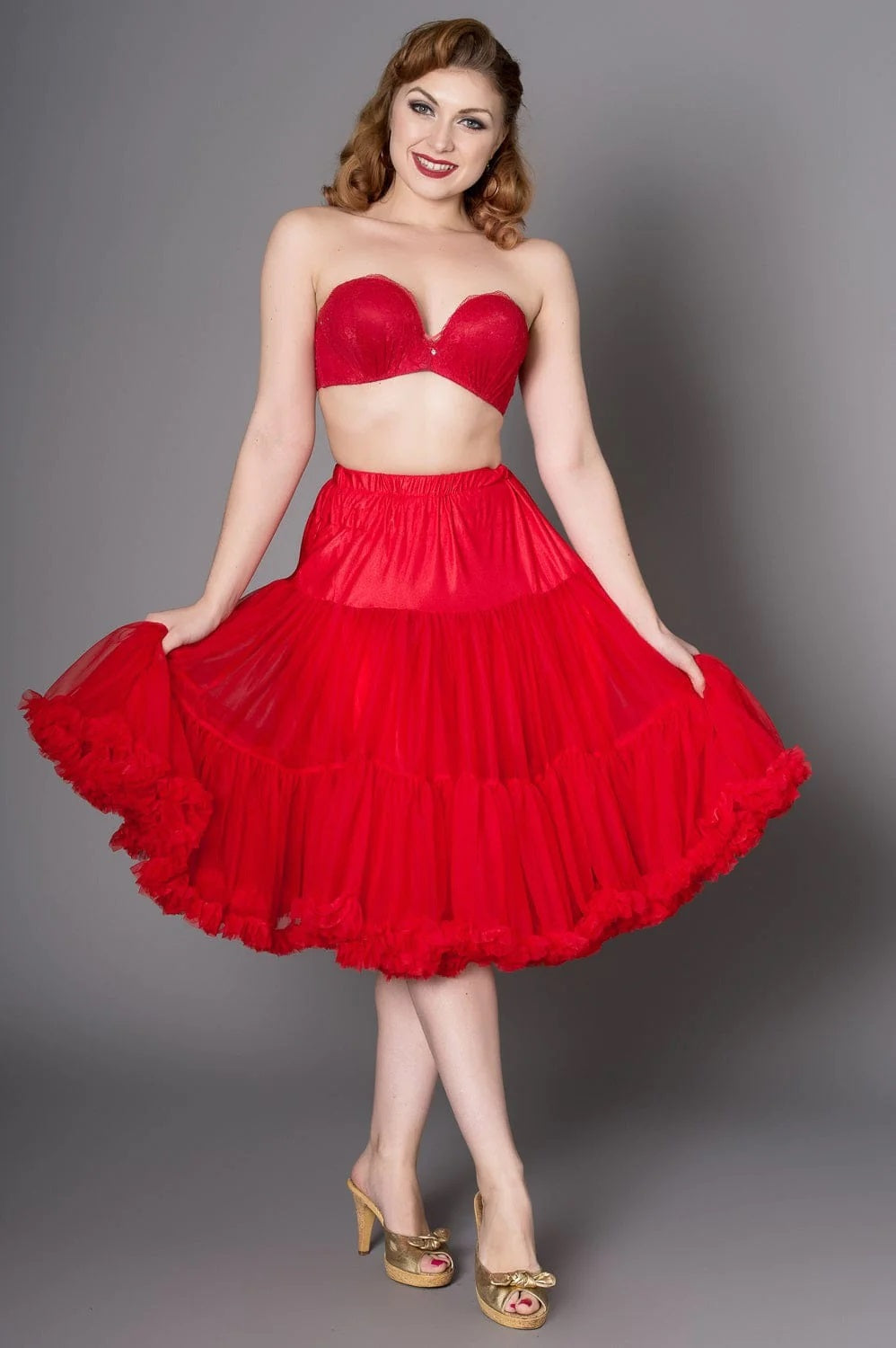 Timeless «BENI RED» 50s Retro RUFFLE Unterrock Flared Swing PETTICOAT - Rot