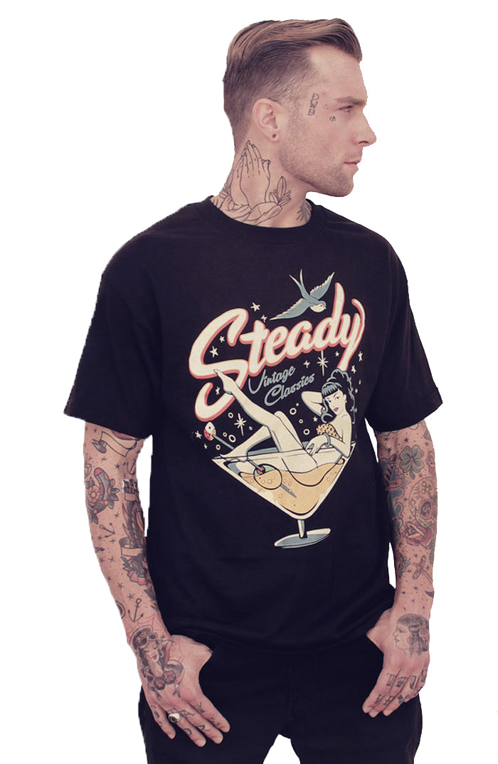 Rock Steady STEADY Vintage Classic Martini Pin Up Motiv Mens T-SHIRT Shirt