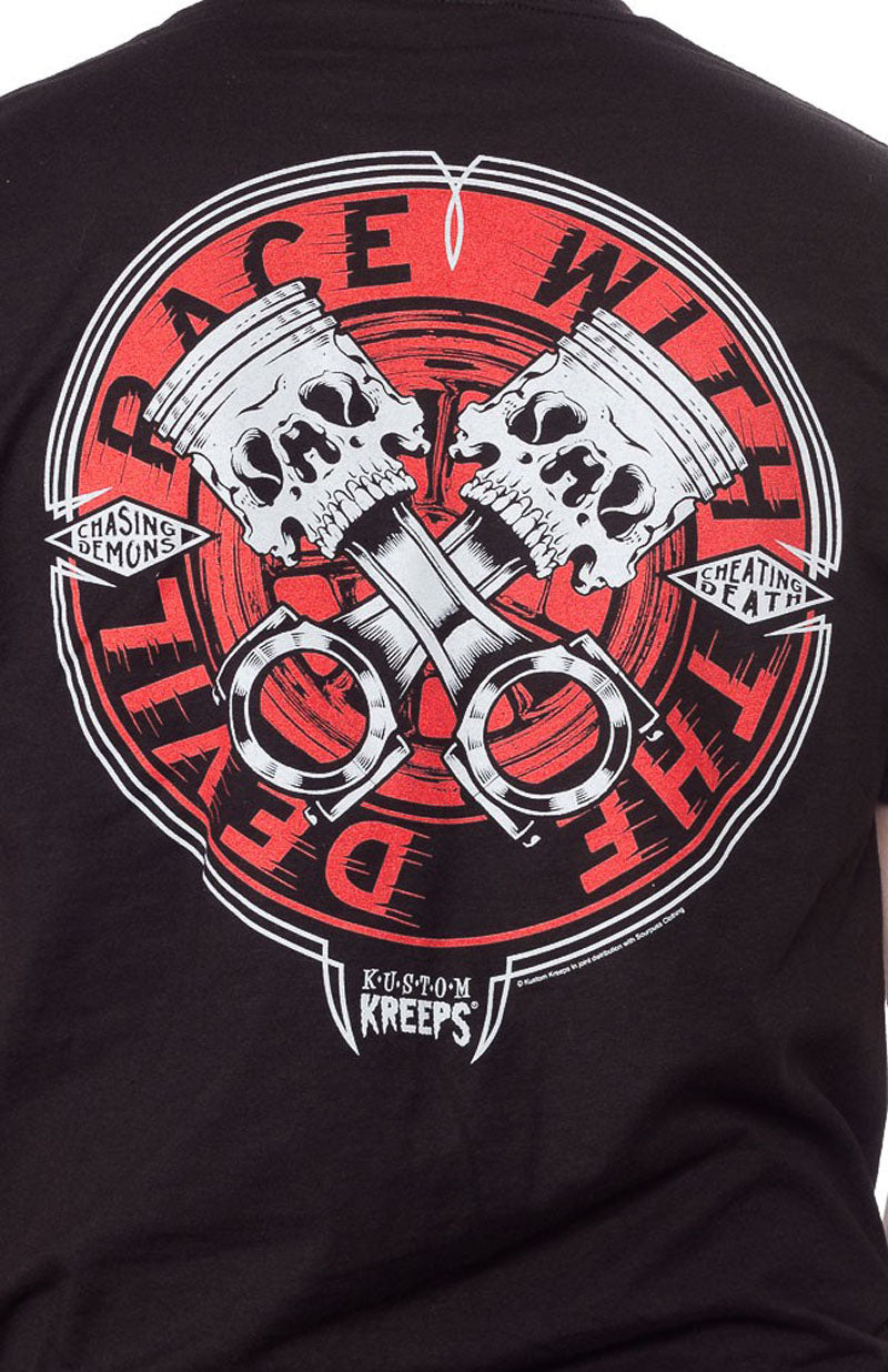 Kustom Kreeps CHEATING DEATH Hotrod Piston Skull Backprint T-SHIRT Shirt