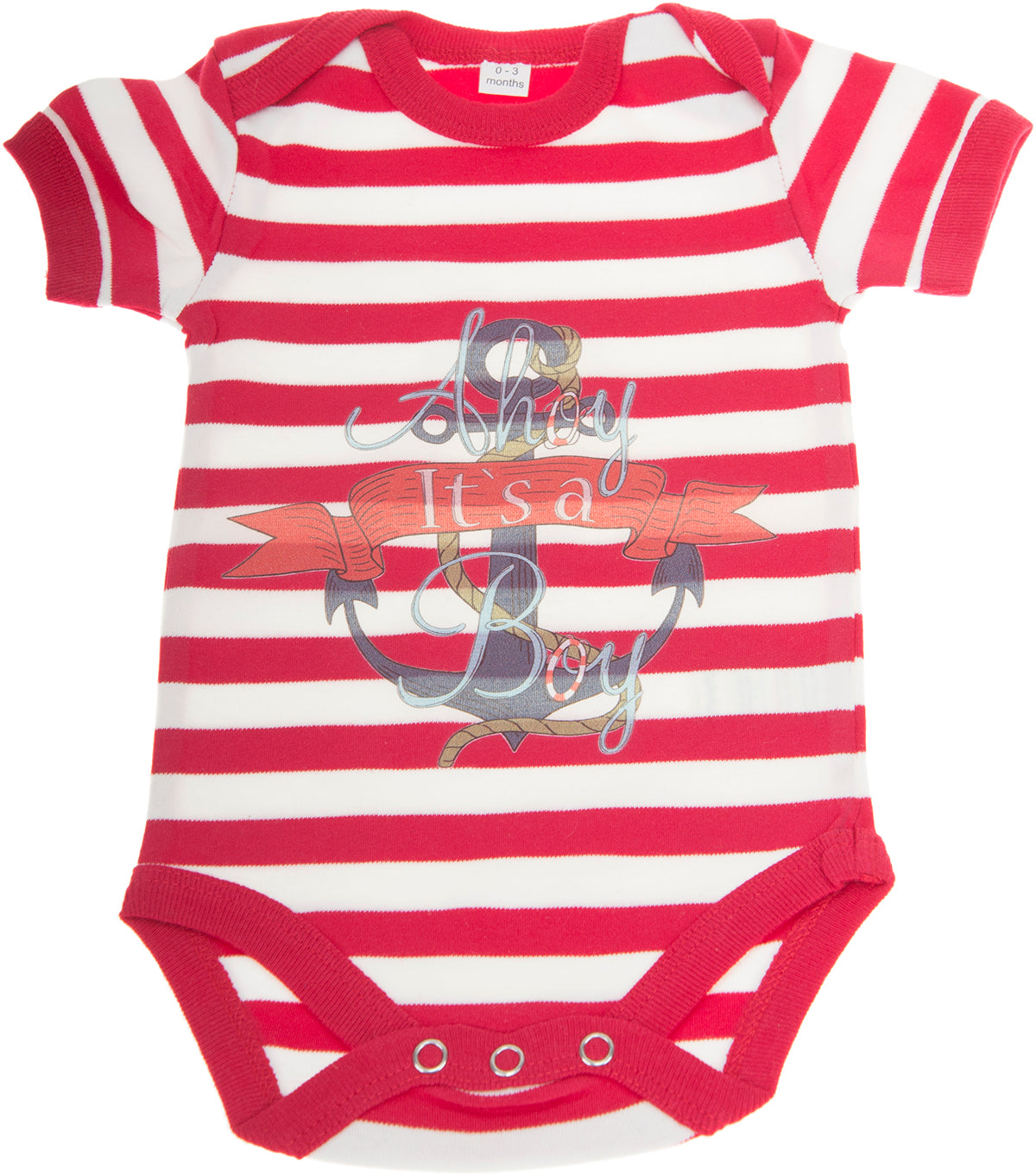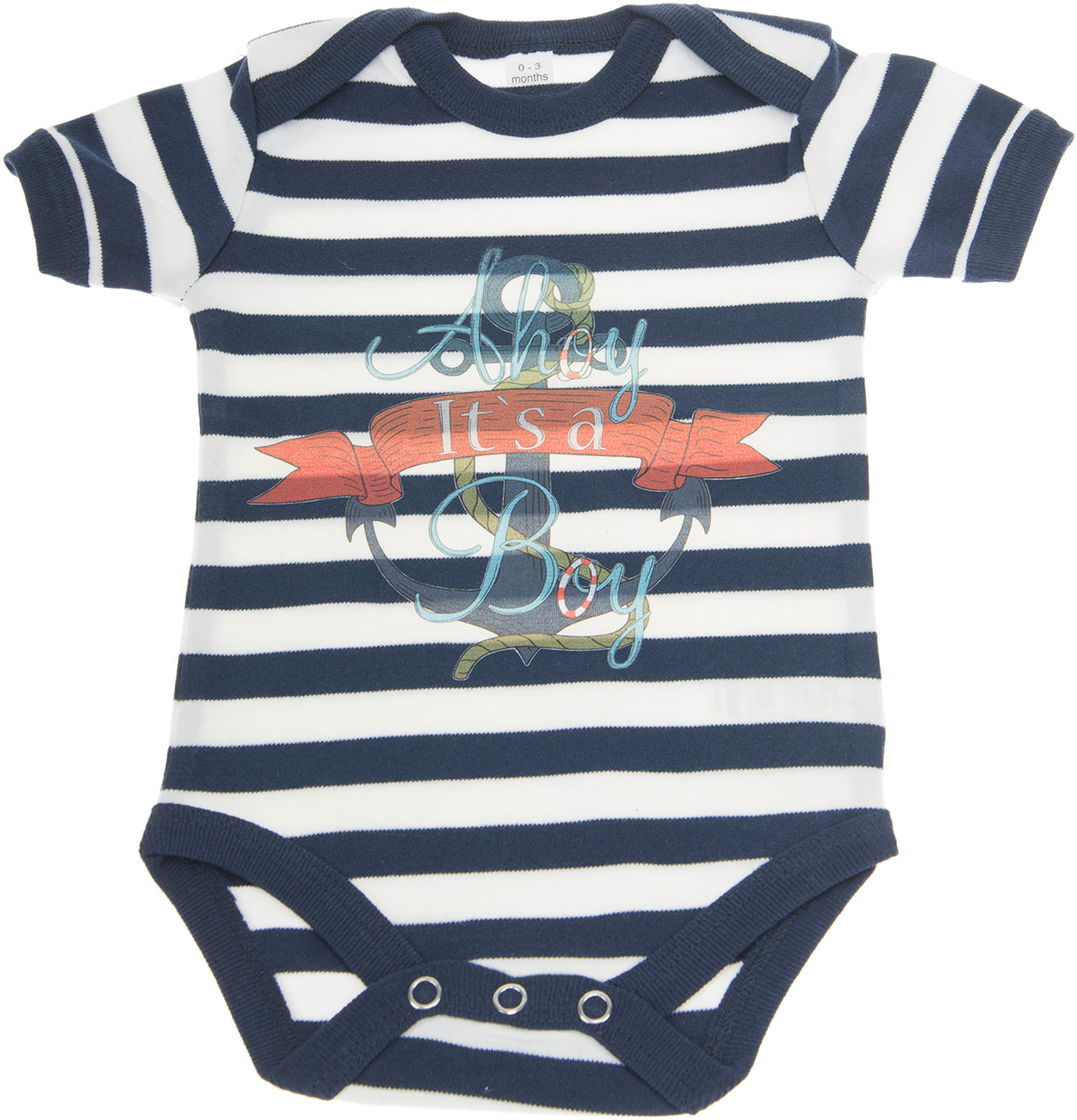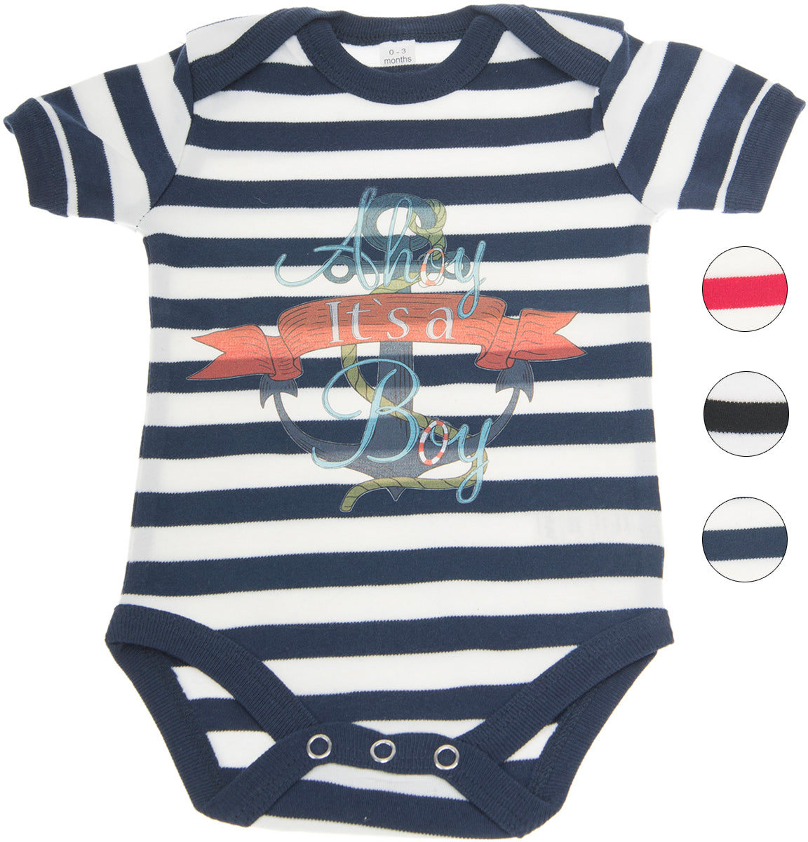 Matrosen AHOY IT'S A BOY Playsuit STRIPED Anchor Anker Kurzarm BABY BODY