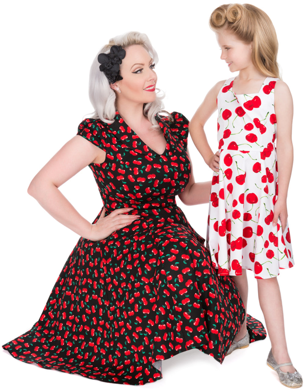 Hearts & Roses »BOMBSHELL CHERRY« Kirschen Swing KIDS Kleid Weiß