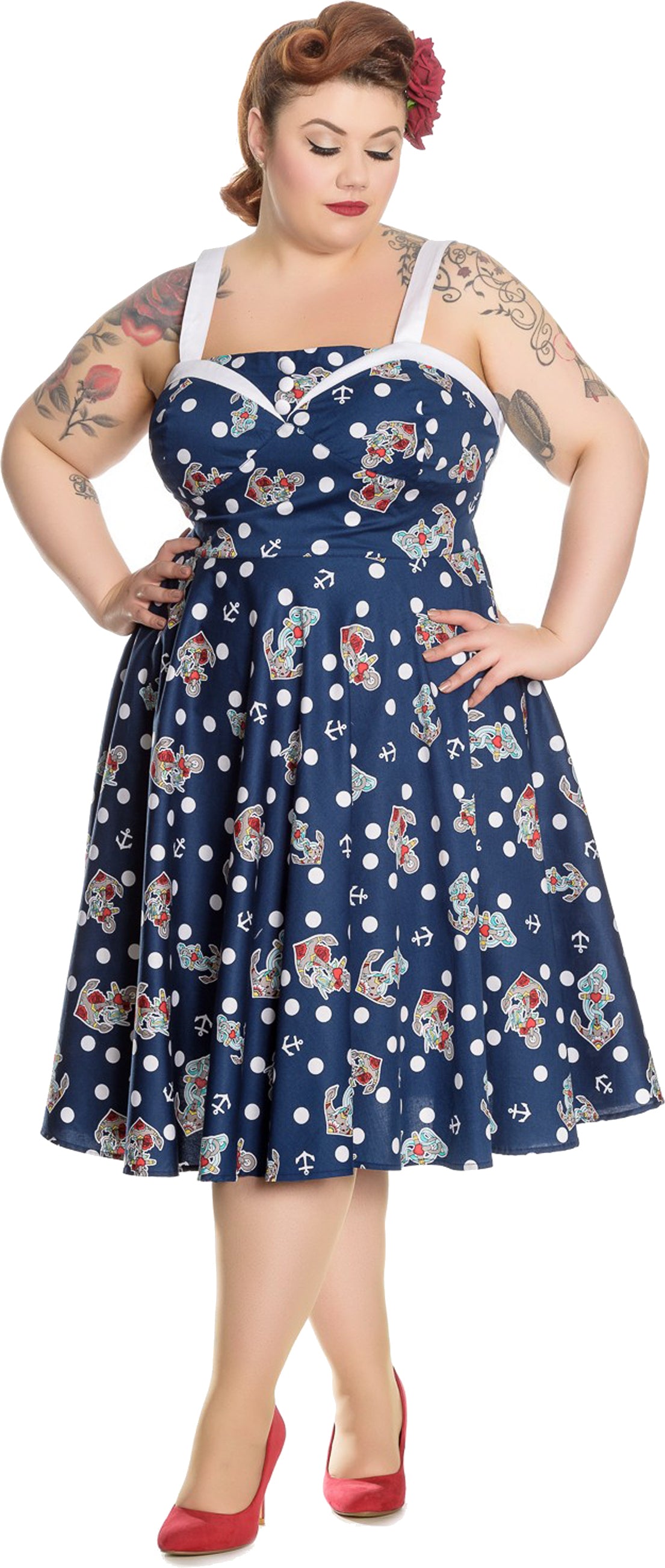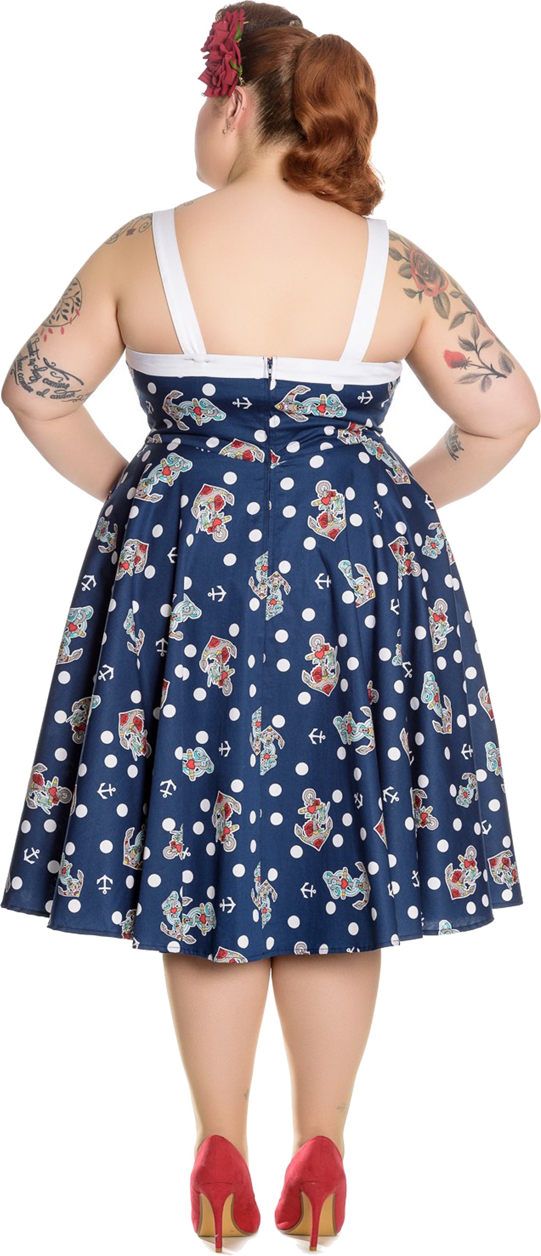 Hell Bunny OCEANA Polka Dots Nautical SAILOR Anchor Retro Swing Dress KLEID Plus Size
