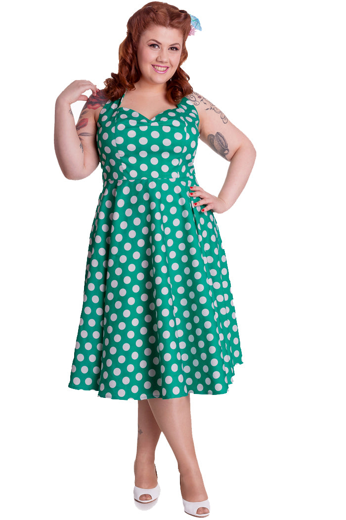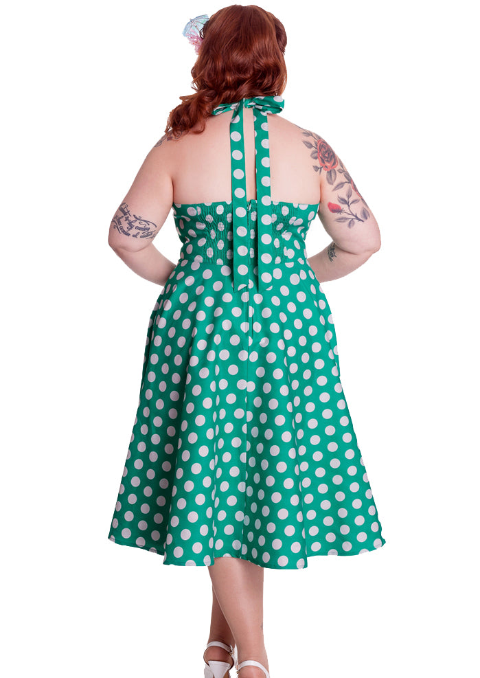 Hell Bunny MARIAM Polka Dots 50s NECKHOLDER Kleid Grün PLUS SIZE