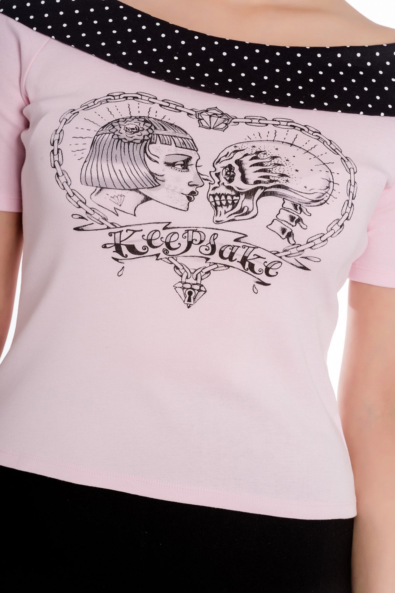 Hell Bunny MEMENTO MORI Carmen Polka Dots Sugar Skull Top SHIRT