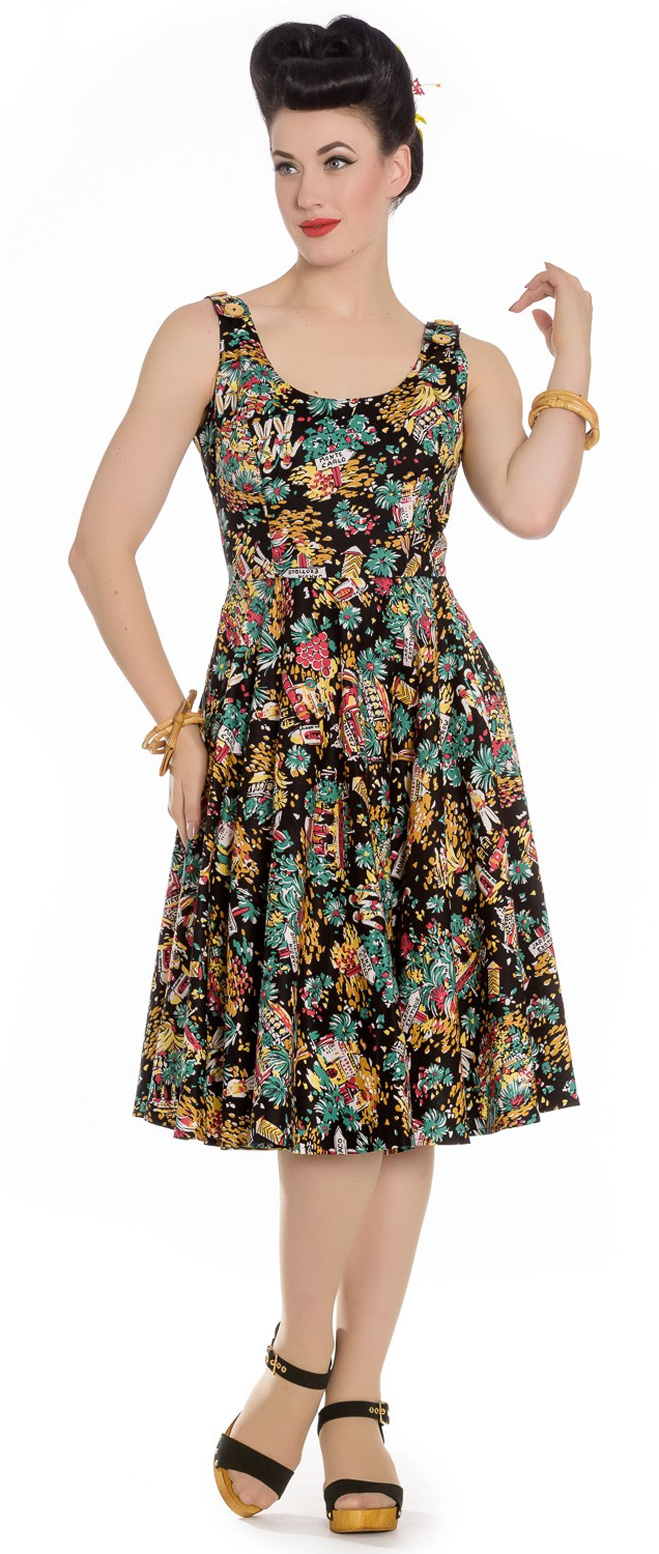 Hell Bunny «VILLAGE TROPICAL» Retro Vintage Straps Swing Dress / KLEID