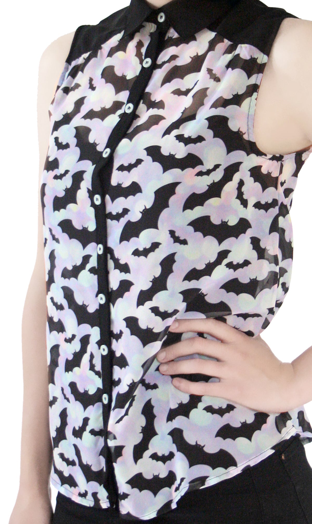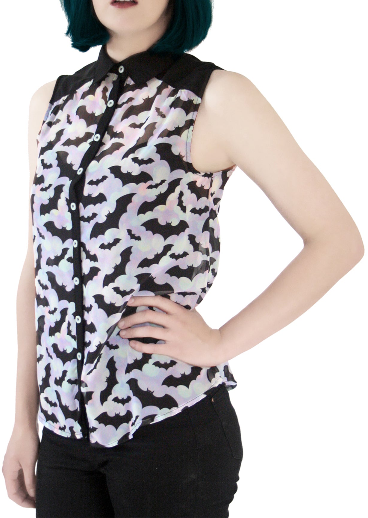 Fearless Illustration TOTALLY BATTY Bats Fledermaus Chiffon Bluse / Top