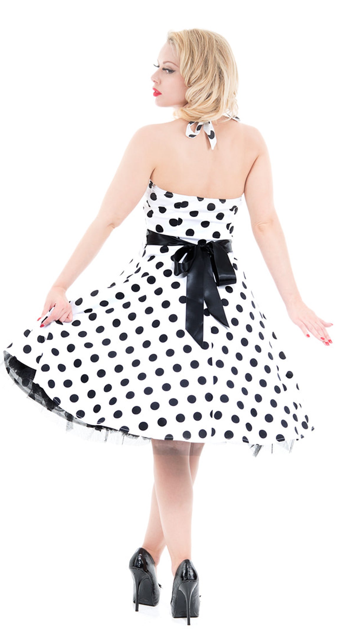 H&R Retro Punkte POLKA DOTS Petticoat NECKHOLDER Swing KLEID Dress w