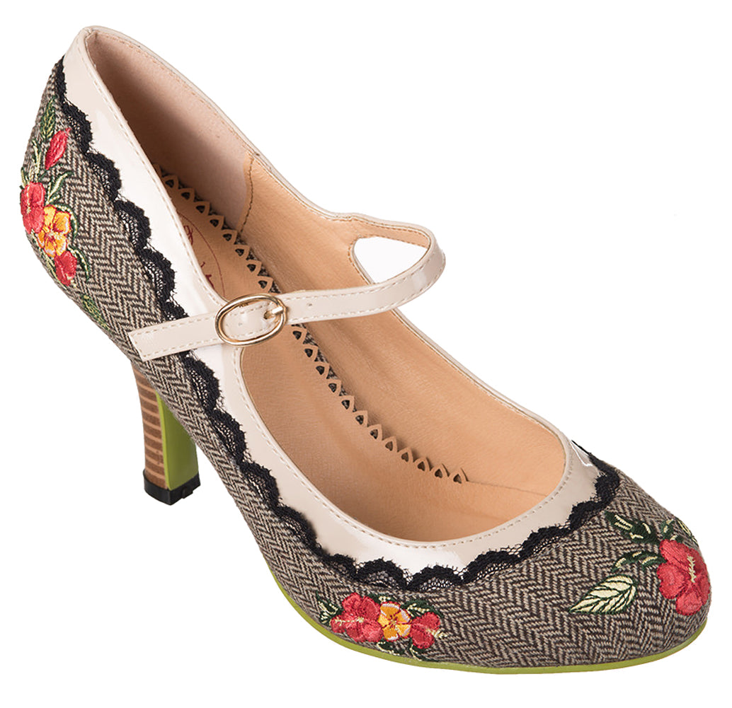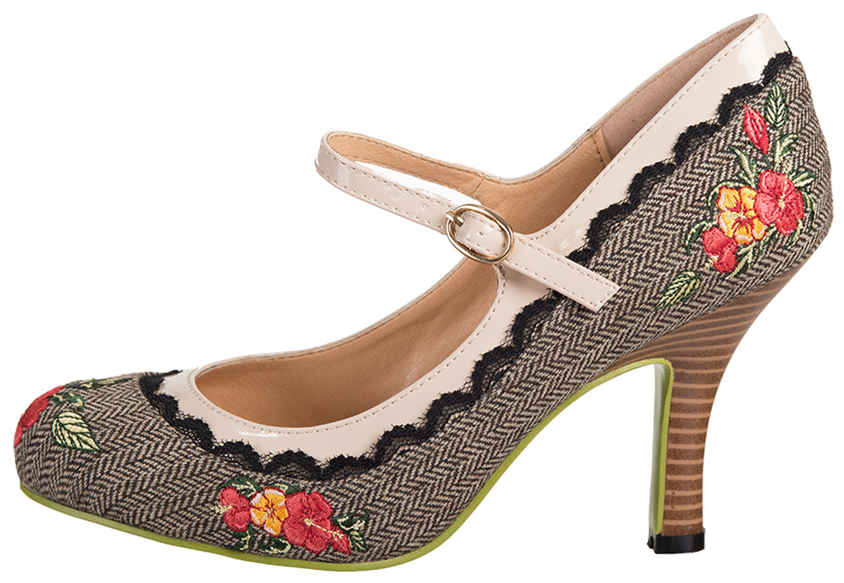 Dancing Days GIRL LOVES ME Herringbone TWEED Riemchen Vintage Flower HIGH HEELS Pumps