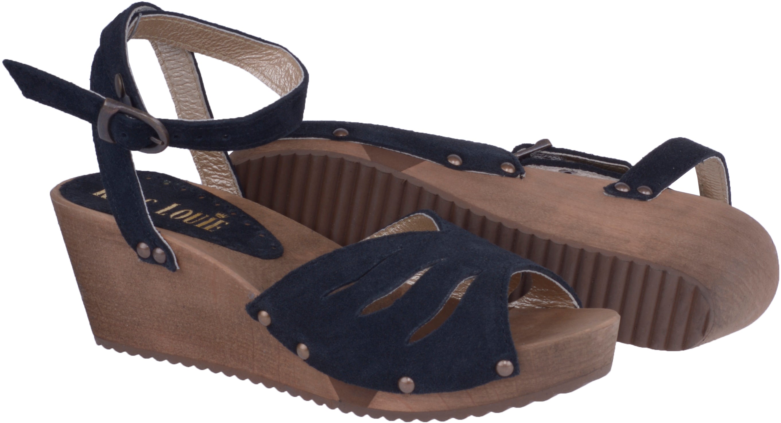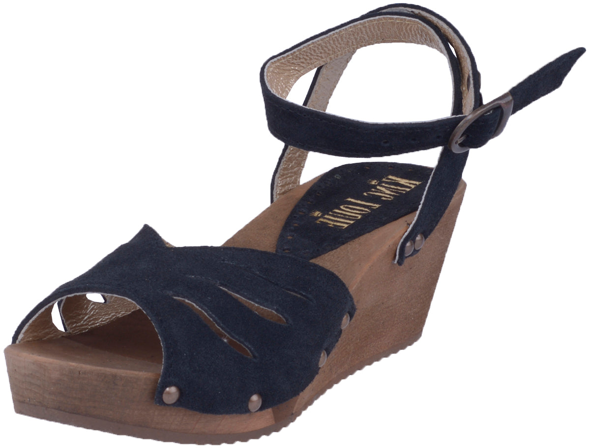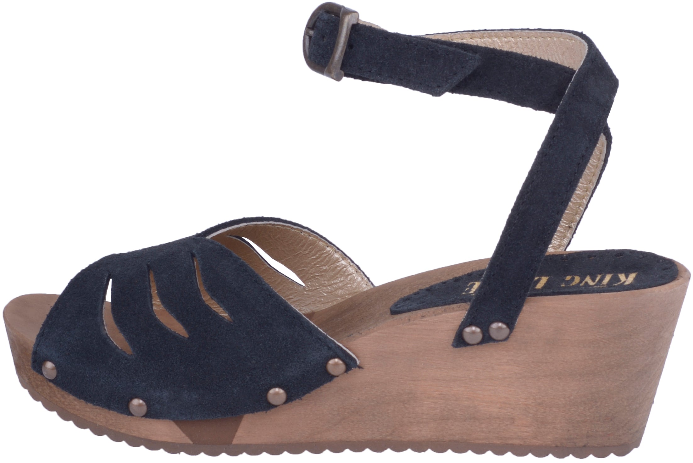 King Louie DITA Vintage Riemchen Leder Wedges Keilabsatz Clog