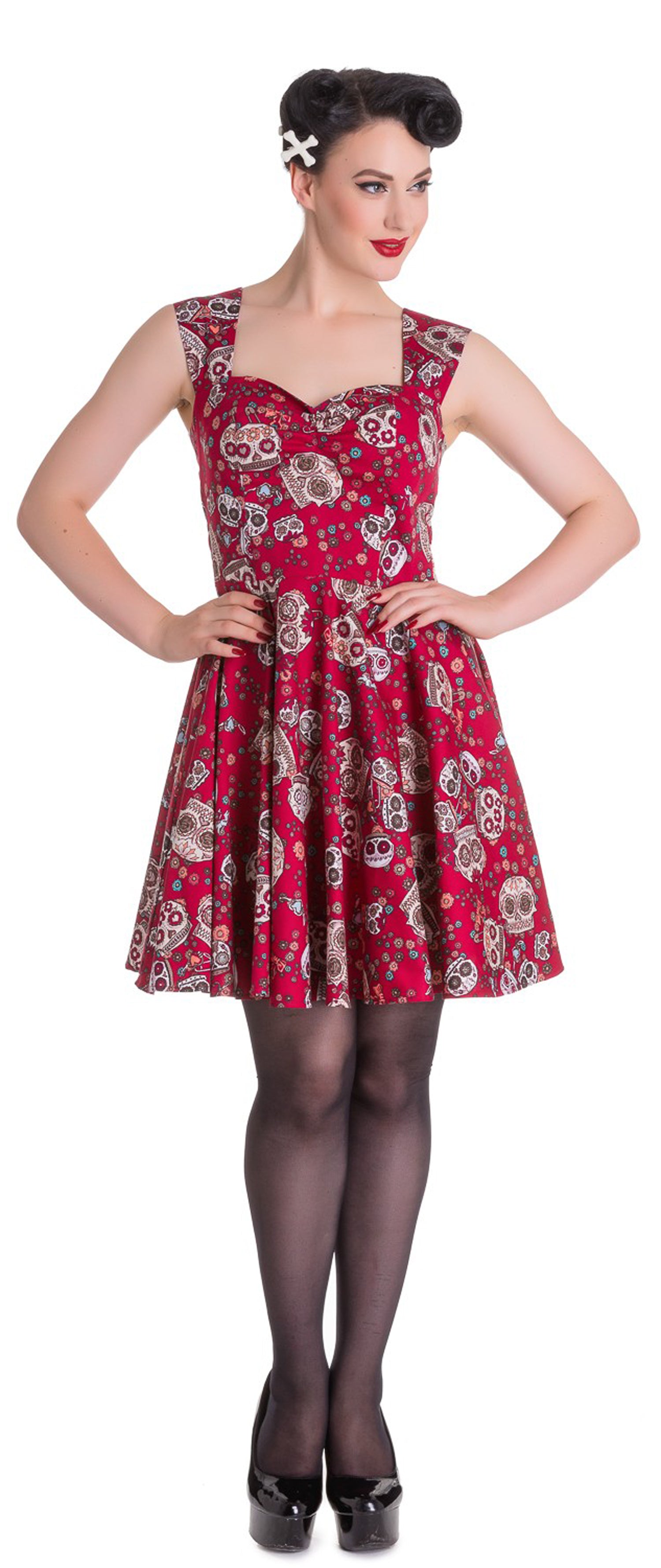 Hell Bunny IDAHO Sugar Skulls Blumenband Retro Folklore Kleid