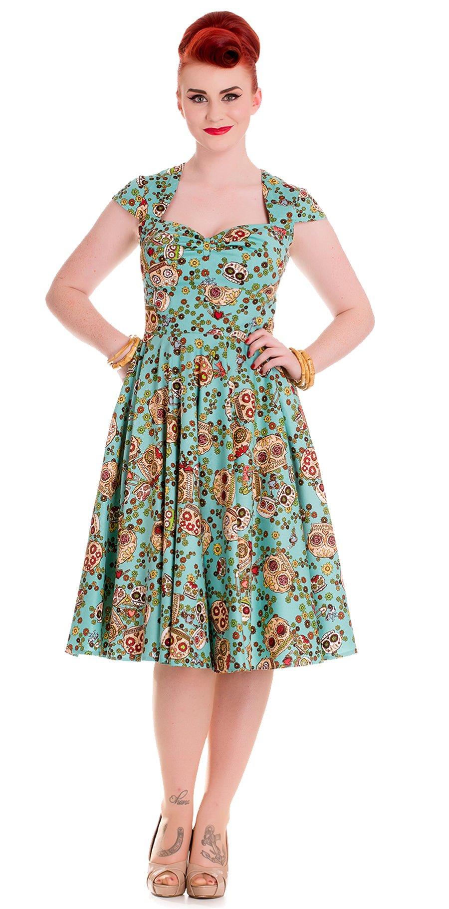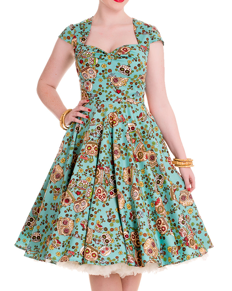 Hell Bunny SASHA Sugar Skulls Flower Pin Up Swing Kleid / DRESS
