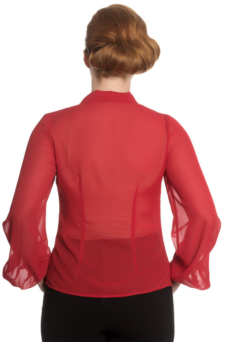 Hell Bunny LYNN Vintage Retro BOW Schleifen Langarm BLUSE / Bluse