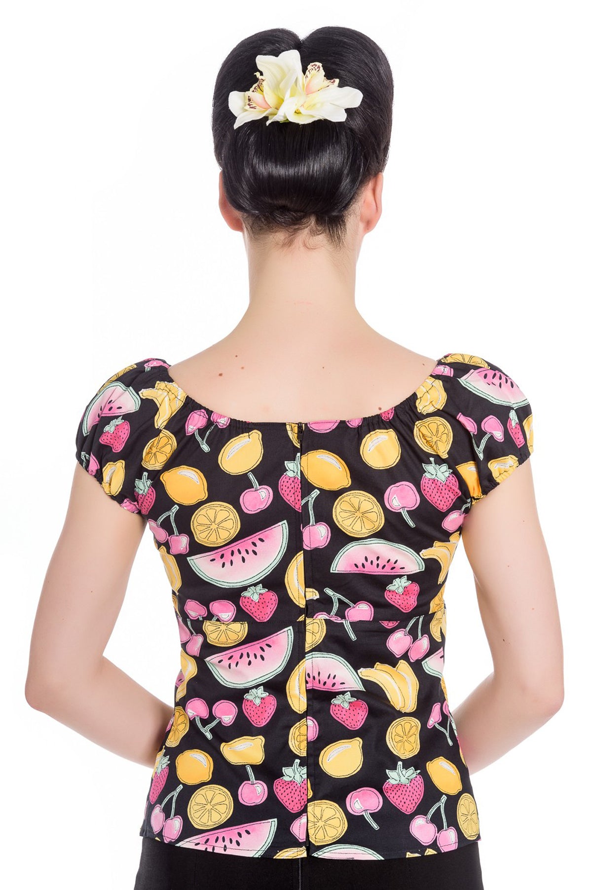 Hell Bunny CARMEN Tropical Fruits Melone Keyhole Pin Up Fruits BLUSE Shirt