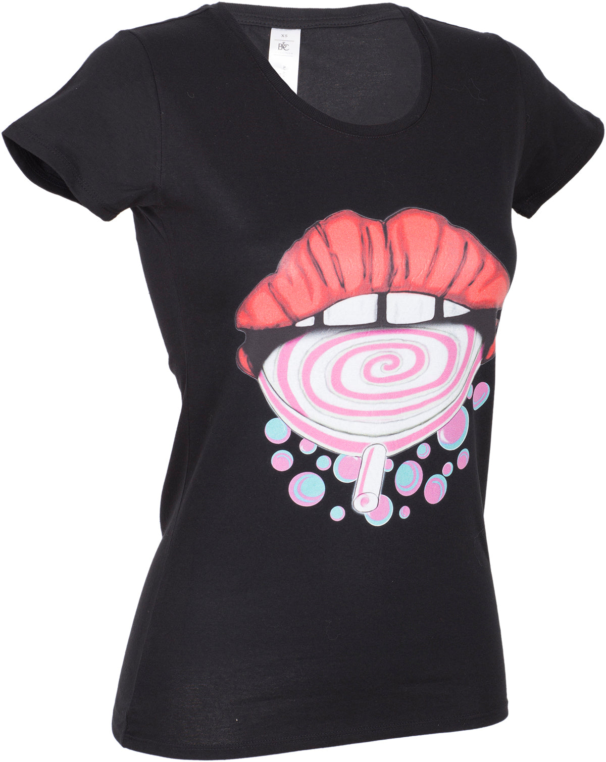 Mörder Kirsche »LOLLIPOP LIPS« Lutscher Lips Girlie Kurzarm Motiv T-SHIRT - Schwarz