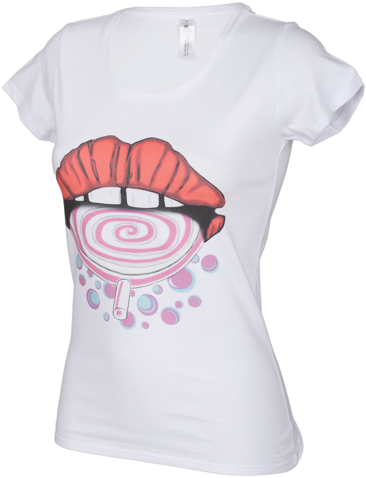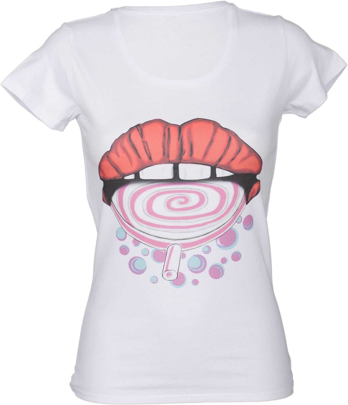 Killer Kirsche LOLLIPOP Lutscher Lips Motiv SHIRT - Weiß
