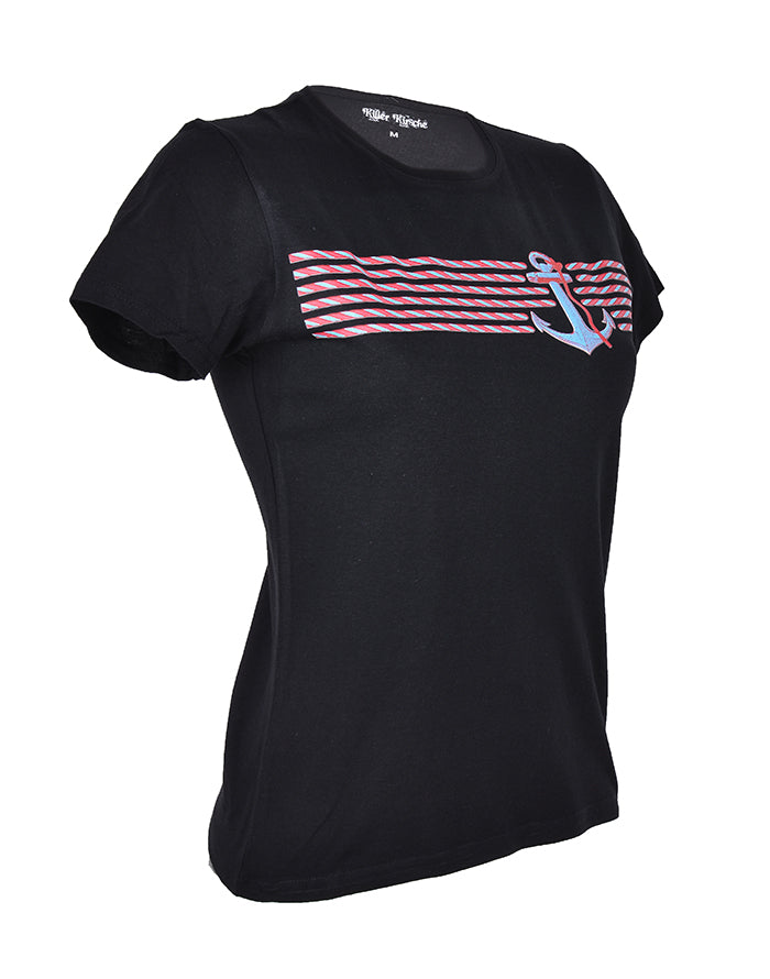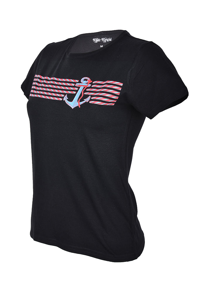 Killer Kirsche »CUTE SAILOR ANKER« Girlie Motiv Kurzarm T-Shirt - Schwarz