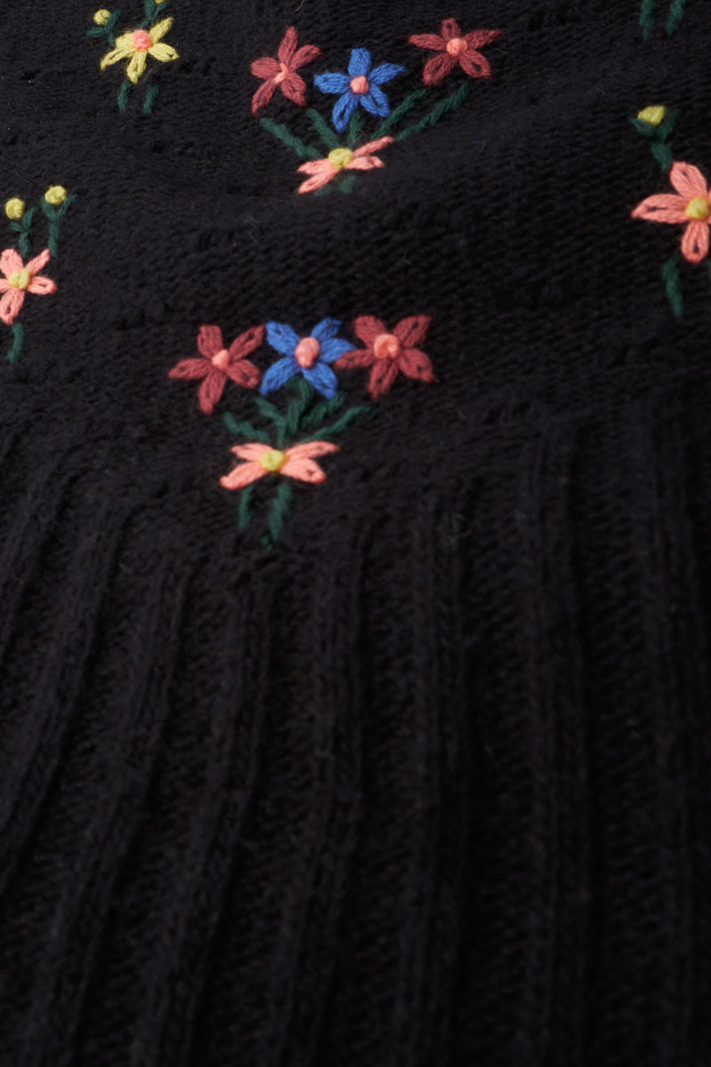 King Louie CHERI Stehkragen FLORAL Langarm PULLOVER Oberteil Schwarz