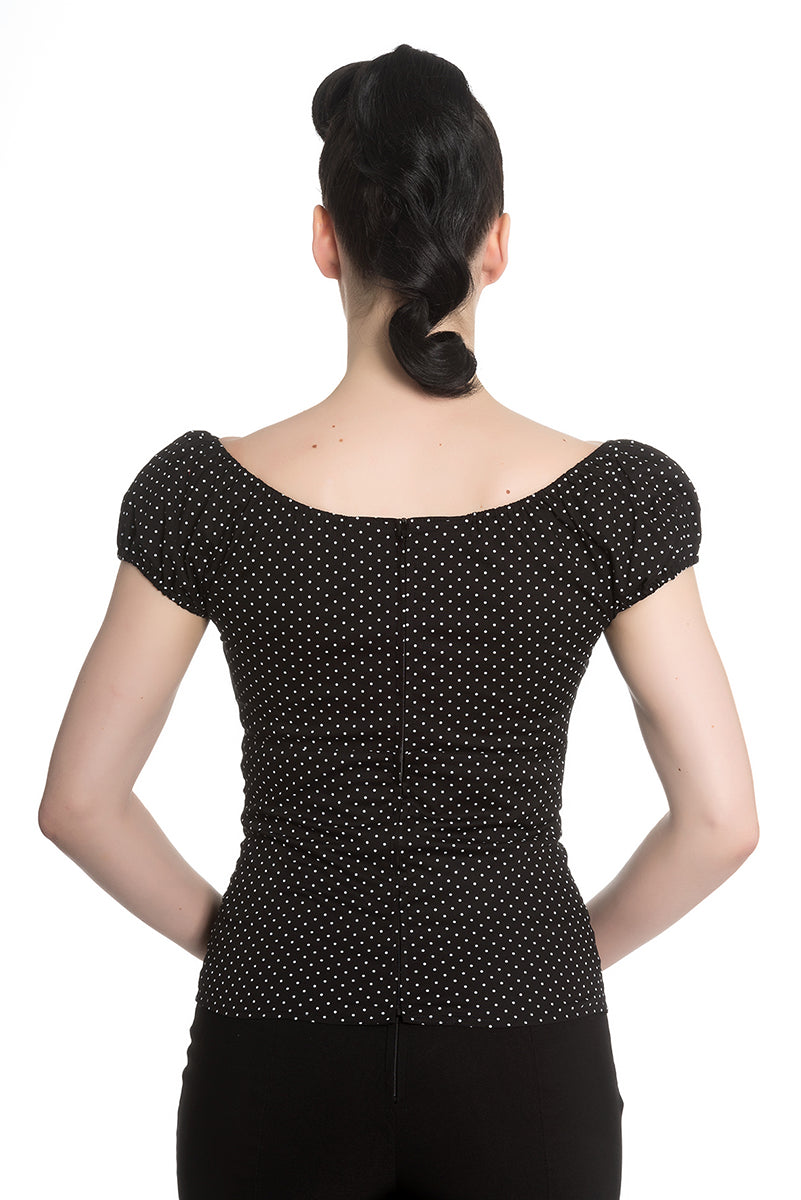 Hell Bunny MIRANDA Mini POLKA DOT Bluse SHIRT - Schwarz