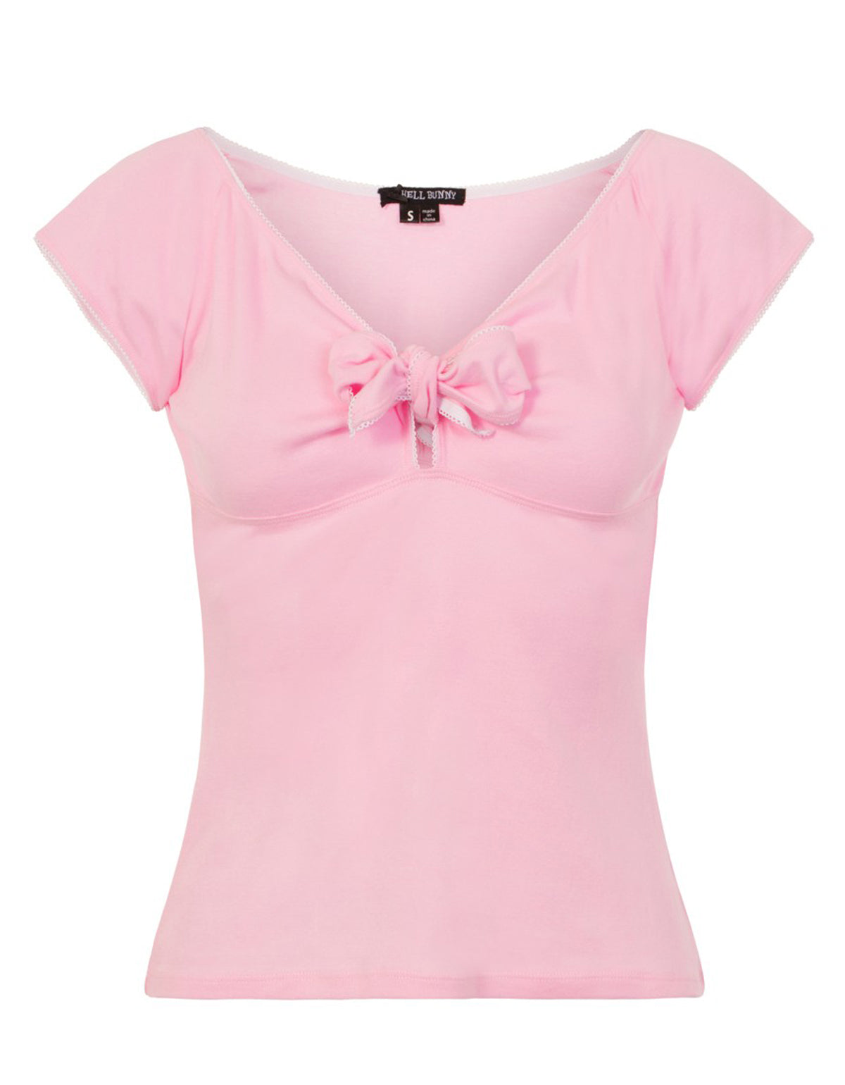 Hell Bunny BARDOT Looped Knot Tie Retro SHIRT Oberteil - Candy Pink