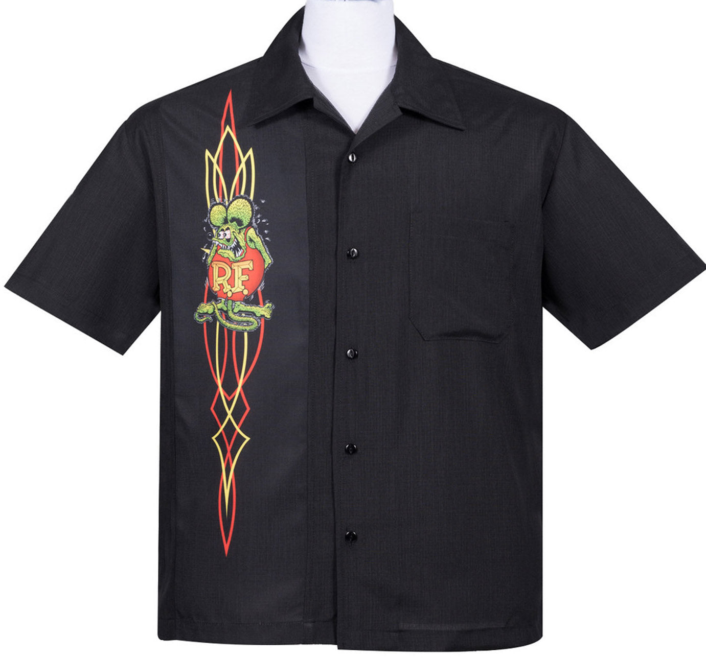 Rat Fink Bowlinghemd mit Nadelstreifen und Knopfleiste im 50er-Jahre-Stil, HEMD