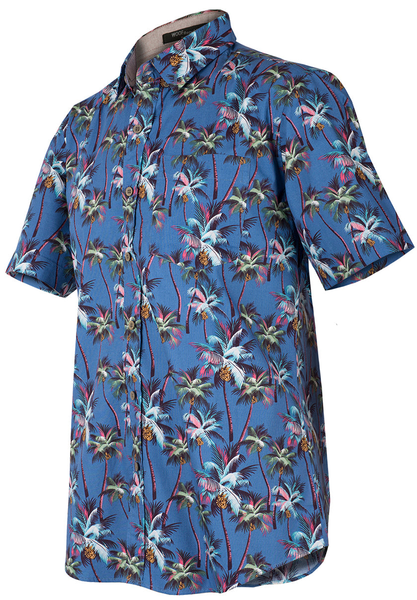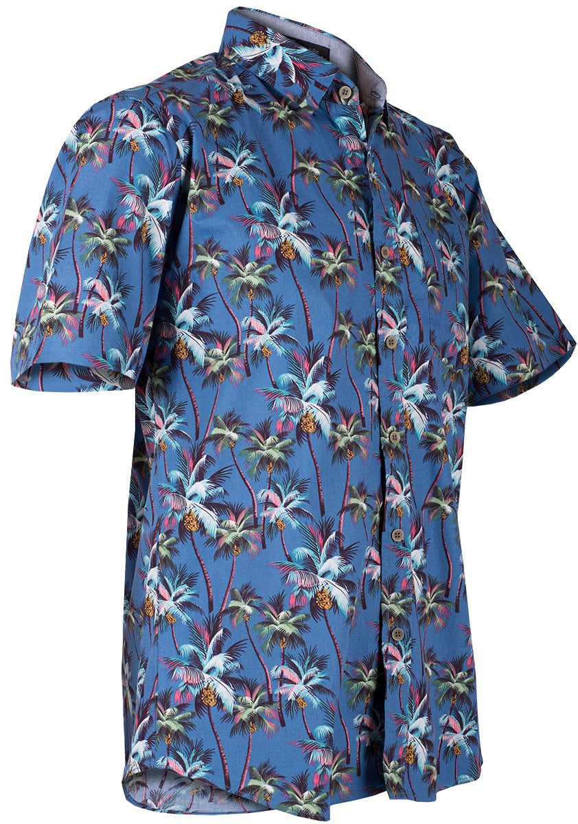 Tropical »RETRO PALM TREE« Palmen HERREN Shirt HAWAIIHEMD Jeansblau