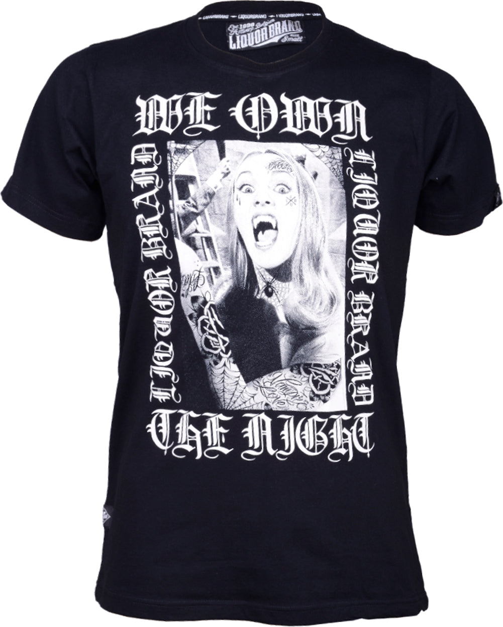 Liquor Brand T-Shirt mit Aufschrift „We Own The Night“, klassisch, Tattoo-Motiv
