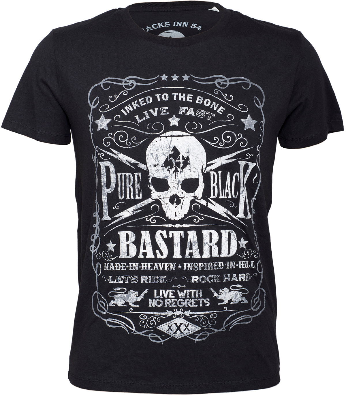 Jacks Inn 54 BASTARD Totenkopf Skull HERREN Oberteil T-SHIRT Schwarz