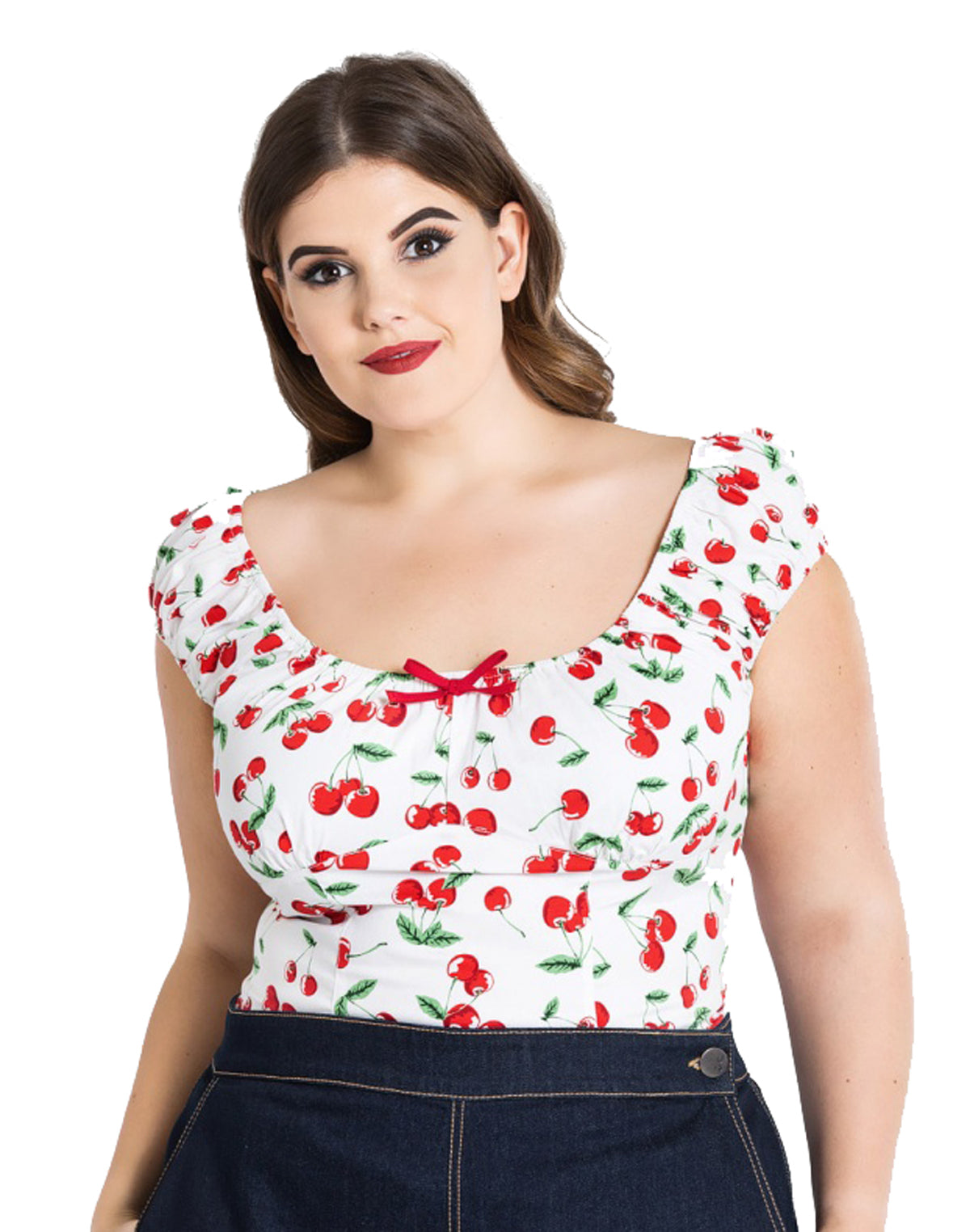 Hell Bunny SWEETIE Vintage CHERRY Kirschen Bow Schleife SHIRT Bluse - Weiß PLUS SIZE