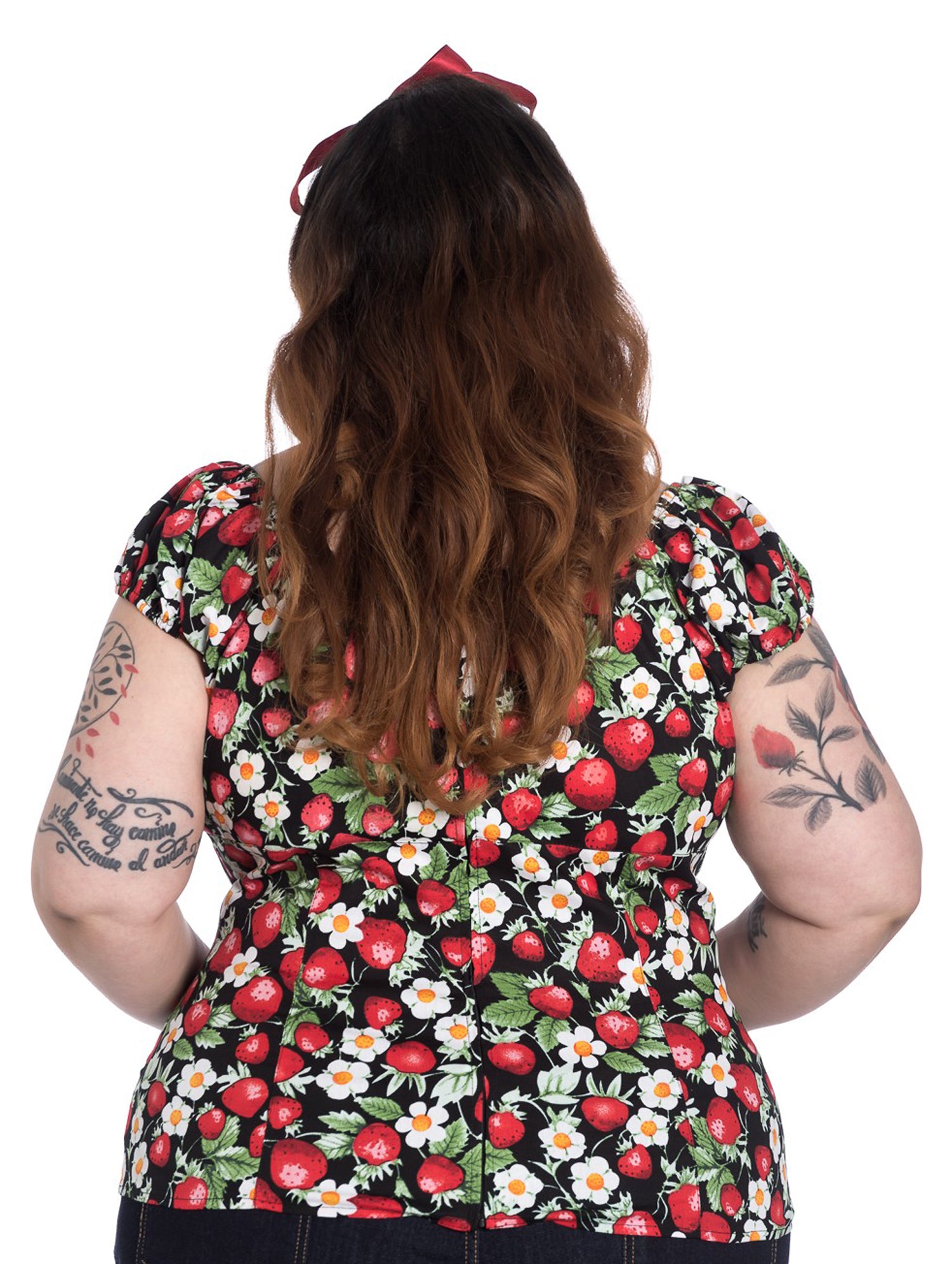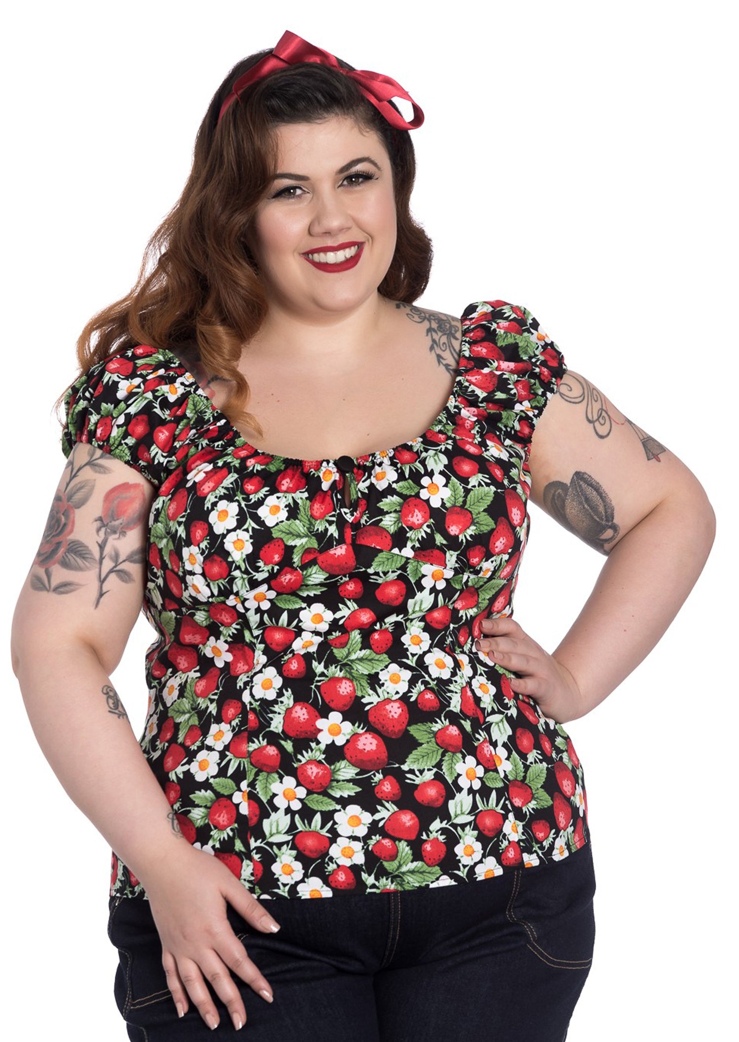 Hell Bunny STRAWBERRY SUNDAE Keyhole ERDBEEREN Retro SHIRT Bluse Plus Size