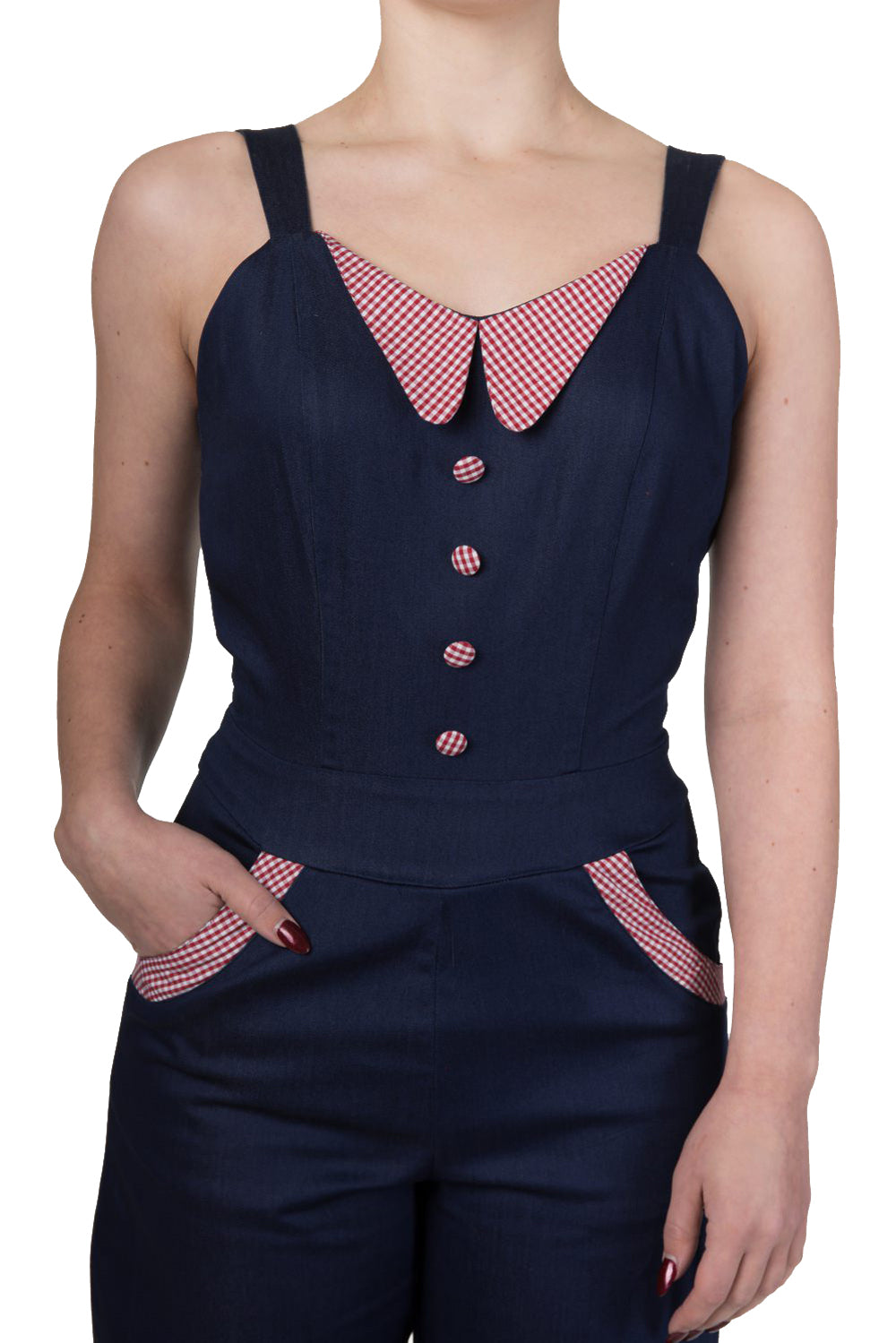 Dancing Days Blaubeere Jeans Denim Gingham Vintage Jumpsuit Overall