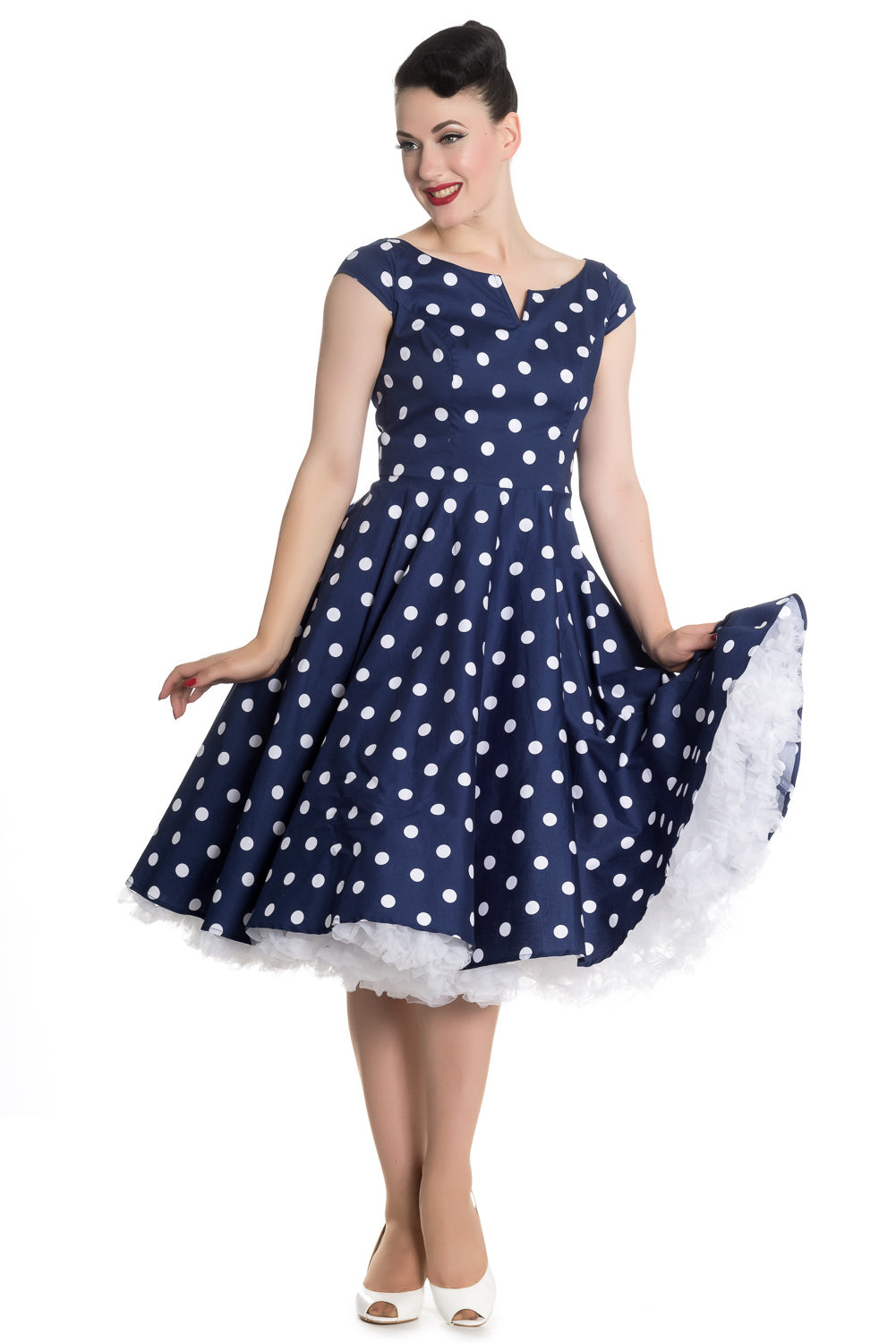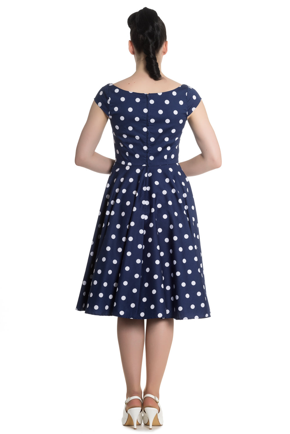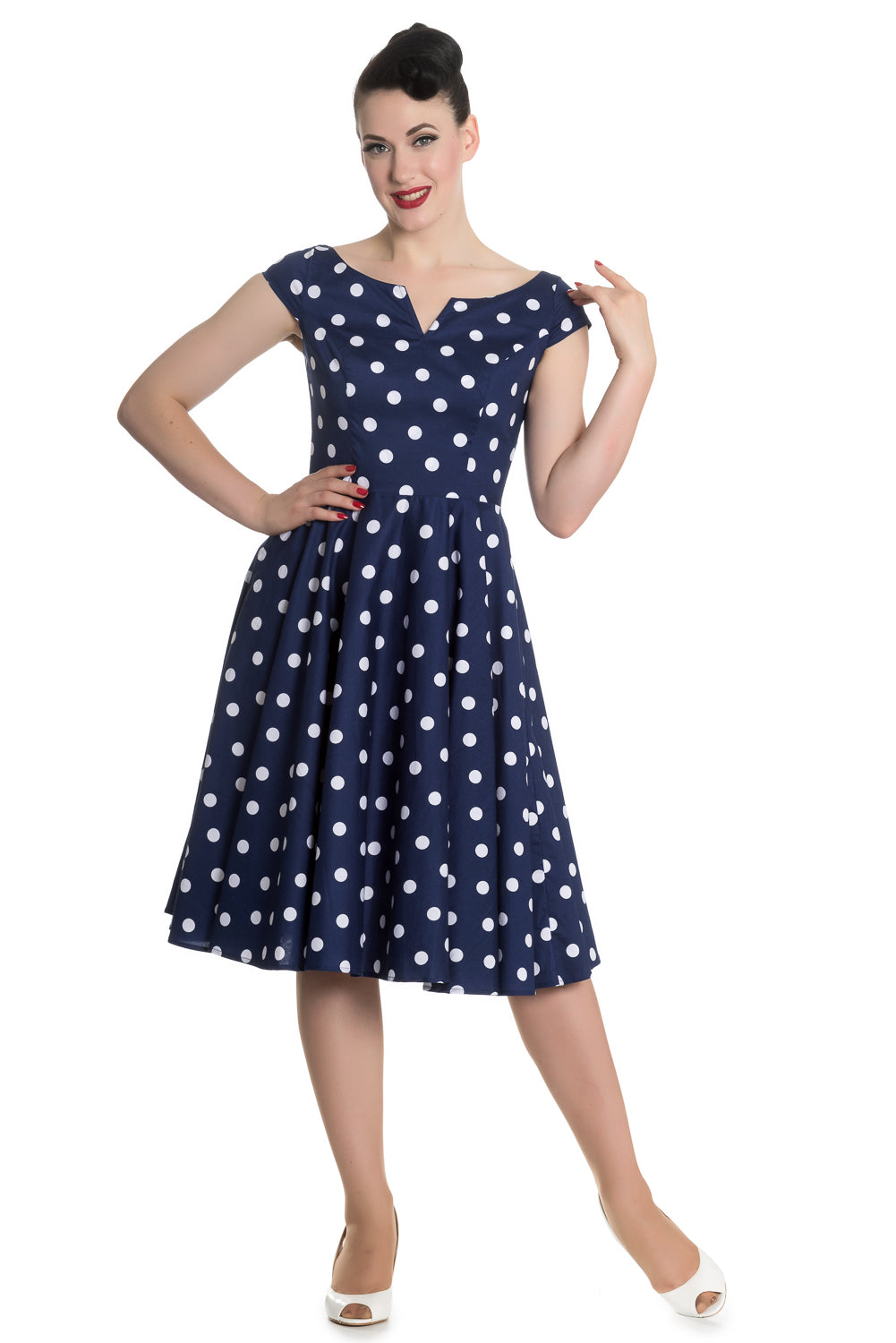 Hell Bunny NICKY 50s Retro POLKA DOTS Punkte Boat Neck Dress Kleid Navy