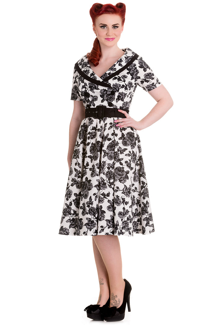 Hell Bunny HONOR Vintage ROSEN V-Neck Kurzarm SWING DRESS Kleid