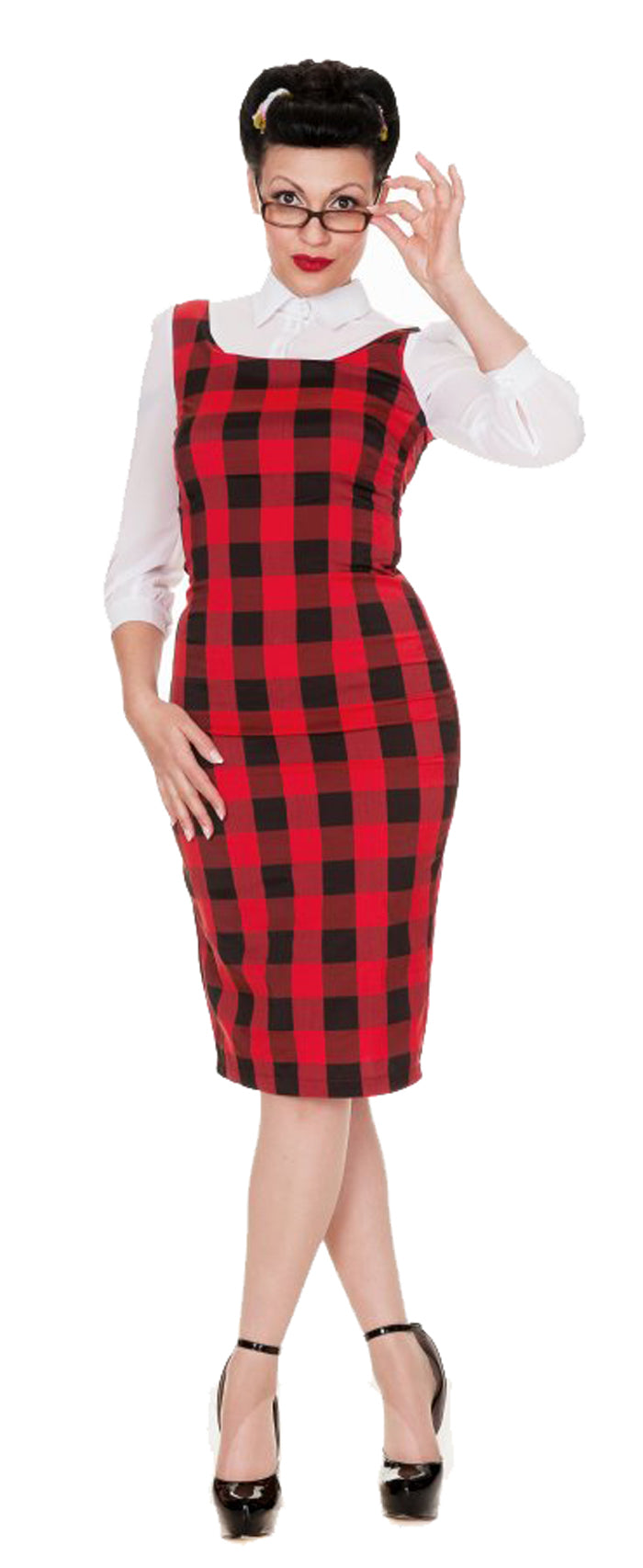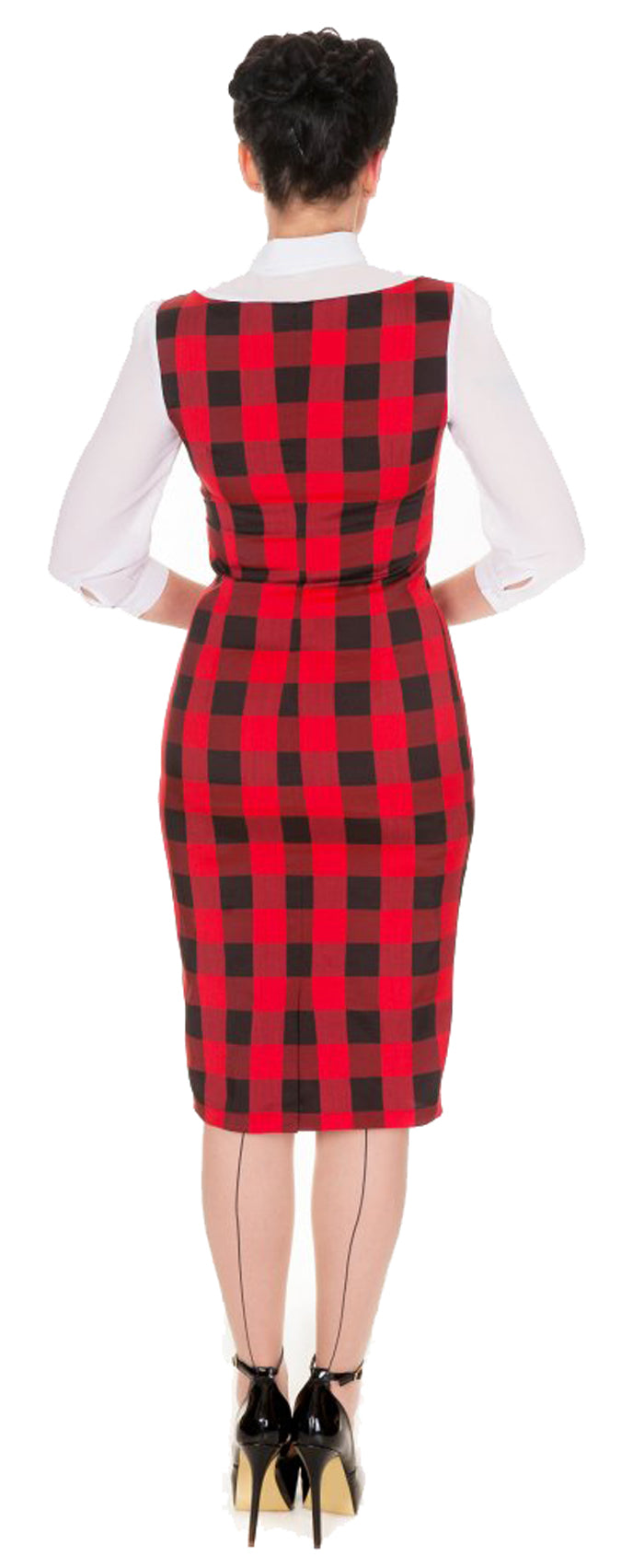 Lindy Bop ELOISE 50er Jahre Vintage TARTAN Pinaforce Pencil Shirt KLEID / Kleid
