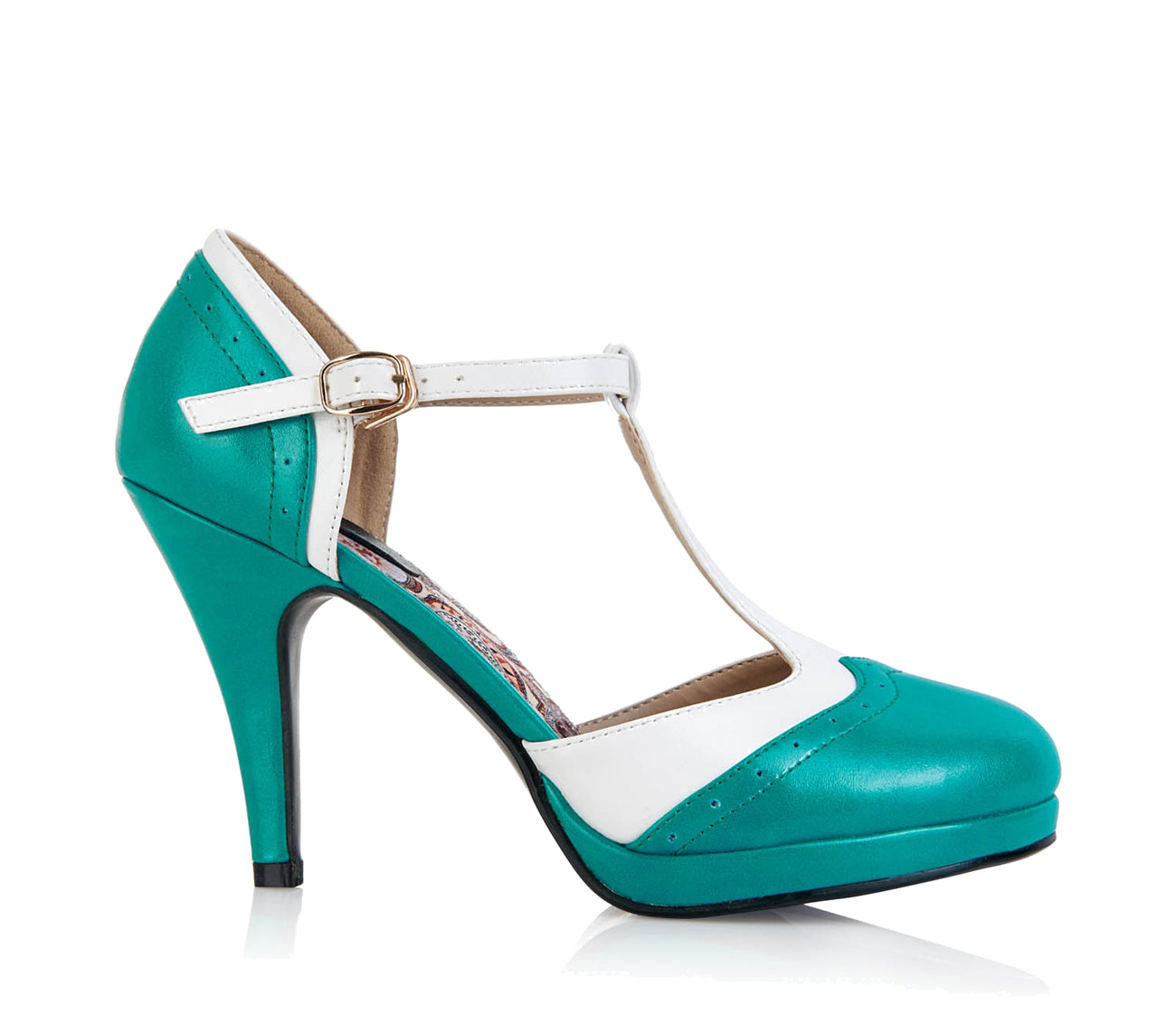 Lulu Hun ANNE Vintage T-Riemen Budapester Brogue Pin Up 50er High Heel PUMPS - Mint