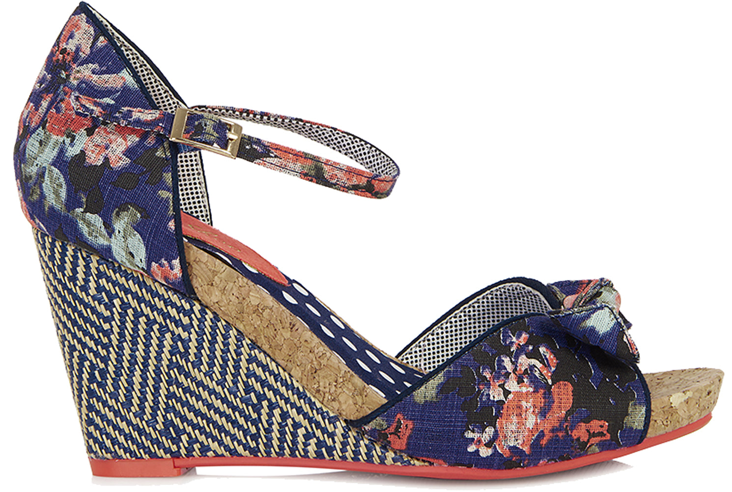 Ruby Shoo MOLLY Vintage Blüten Flower Jeans 50er Jahre Riemchen WEDGES / Pumps